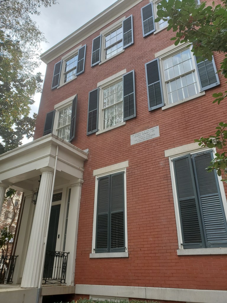 While walking back to our hotel after the meal, we passed by this 19th century home where Robert E. Lee briefly lived at the War’s conclusion and where his family stayed while he was fighting it.