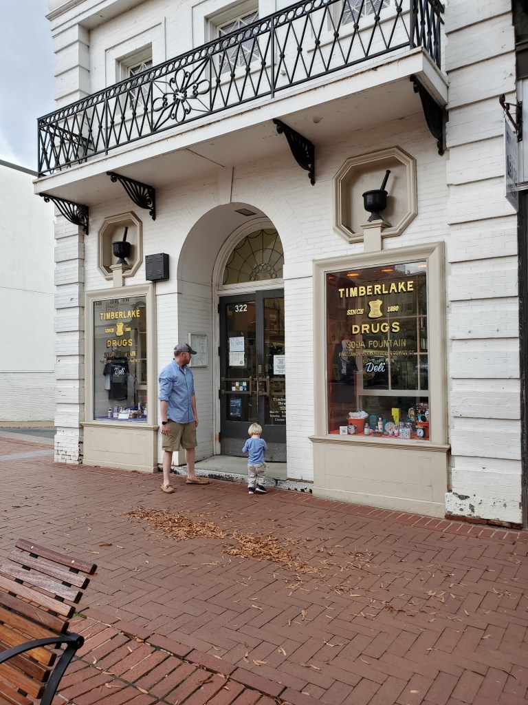 The store is on Main Street in the heart of downtown Charlottesville. Main Street isn’t actually a road and is only open to foot traffic. I’m not sure whether that’s always been the case or if it’s something that came about in more recent years. We passed by at least a couple street performers as we made our way to the drug store.