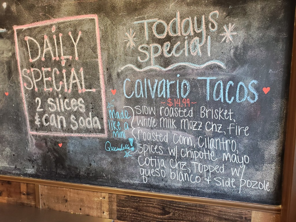 As is the case with so many of the pizzerias and sandwich shops I’ve visited, America’s Pie has a wall that is partially devoted to the local sports teams. They also have a classic Pepsi theme above the ordering counter.