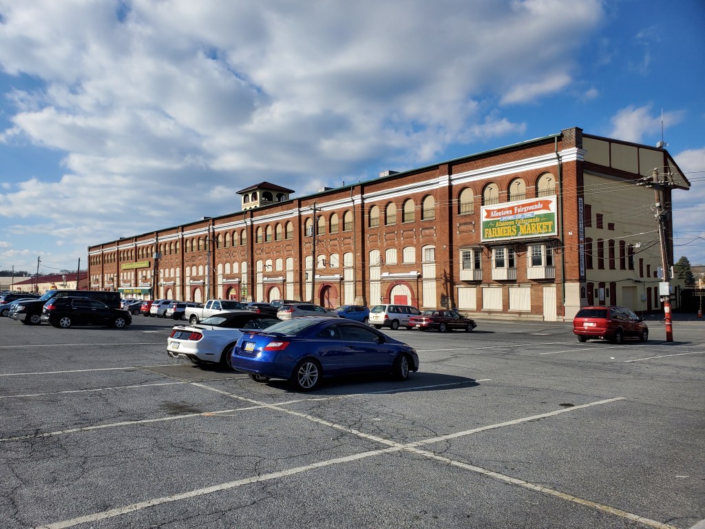 The restaurant is located right next to the massive complex that is home to the Allentown Fairgrounds and Farmer’s Market. My father-in-law has been telling me about the farmers market, where he picks up meat and other goodies for our family meals, for years. But I had never seen it in person and couldn’t believe the size of the building. As was the case with that slice of pizza the other day, the photo doesn’t really do it justice.