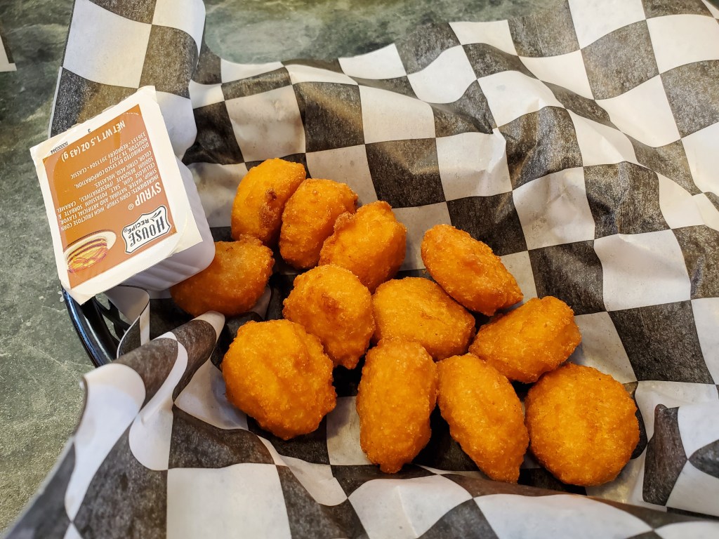 I’m not sure of the extent to which corn nuggets are regional, but I’ve seen them around Pennsylvania over the years and don’t recall them being on many menus in other parts of the country. They are sweet and full of corn kernels.