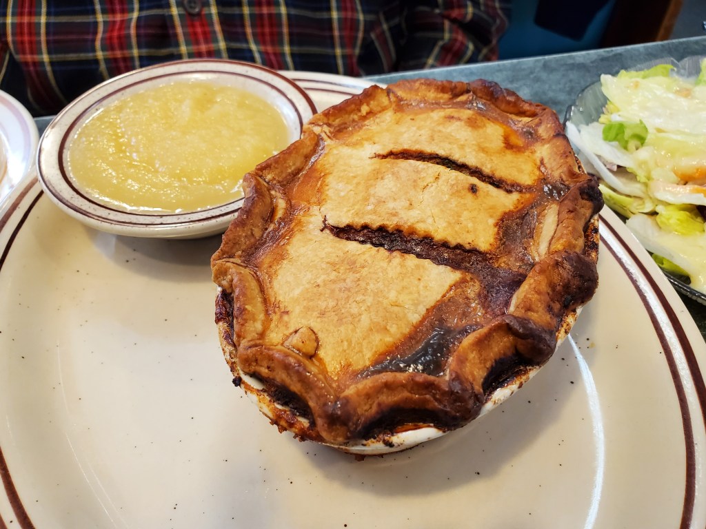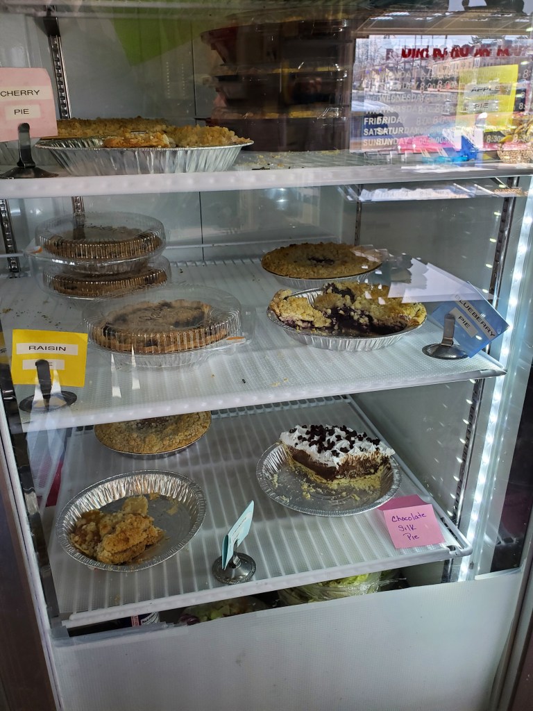 I’m normally excited by the sight of a pie case upon entering a restaurant. But I wasn’t nuts about the look of most of these particular pies – I prefer regular crust to crumb – and had ice cream in mind for dessert anyway.
