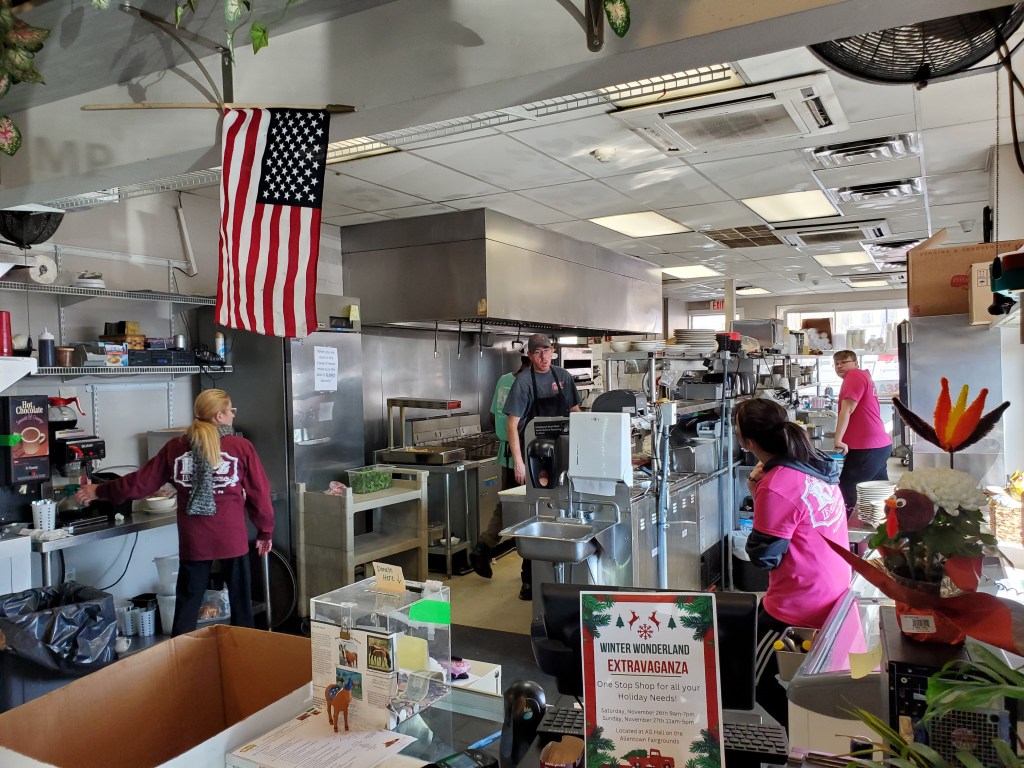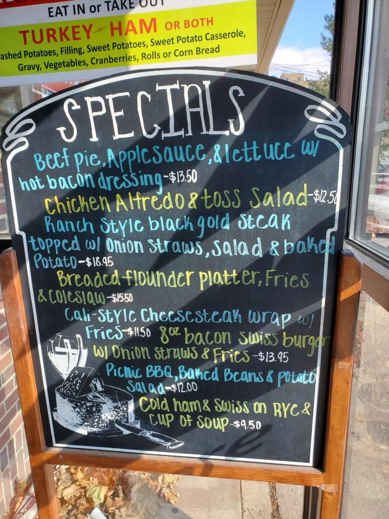 The restaurant’s name is actually misleading. They don’t serve anything that even closely resembles real barbecue. Their trademark barbecue sandwiches are just sliced or shredded meat – pork, turkey, beef, ham or hamburger – with the addition of barbecue sauce on a roll. I’ve had ham barbecue sandwiches that were similar in western Pennsylvania, but not for many years. In any event, none of us ordered one.