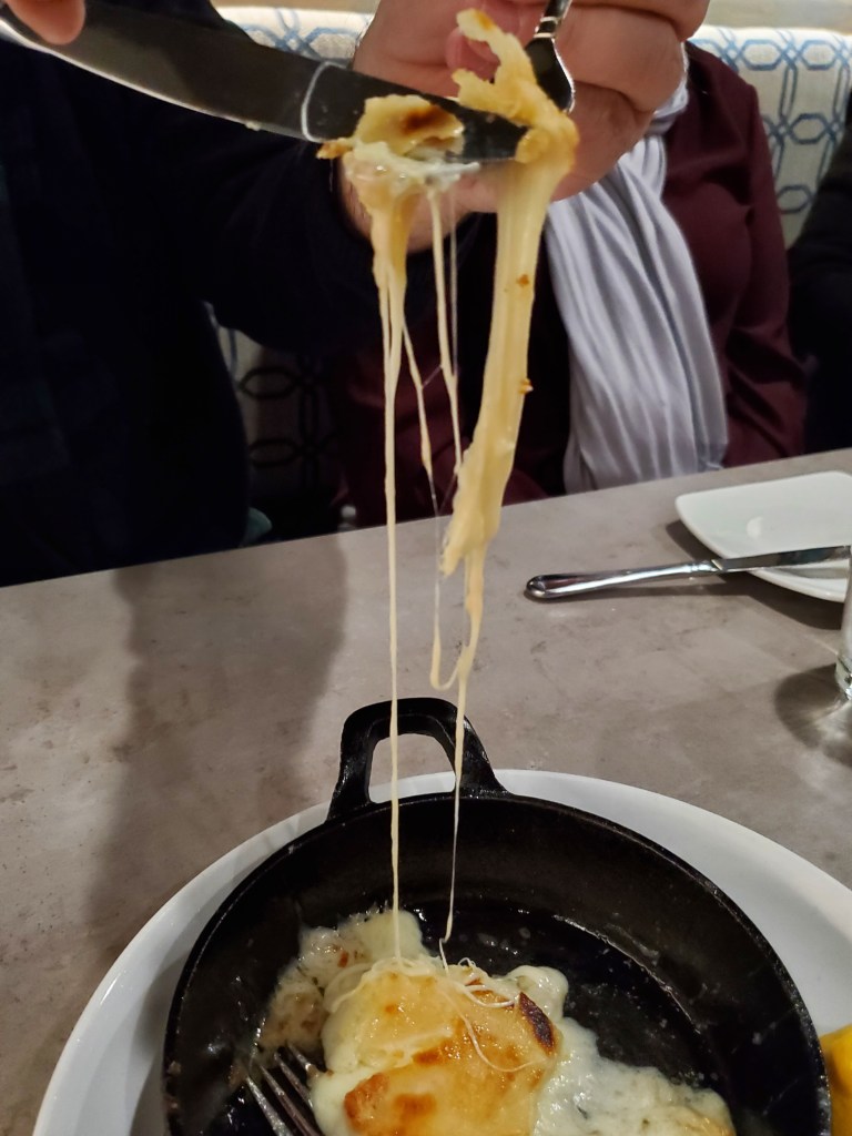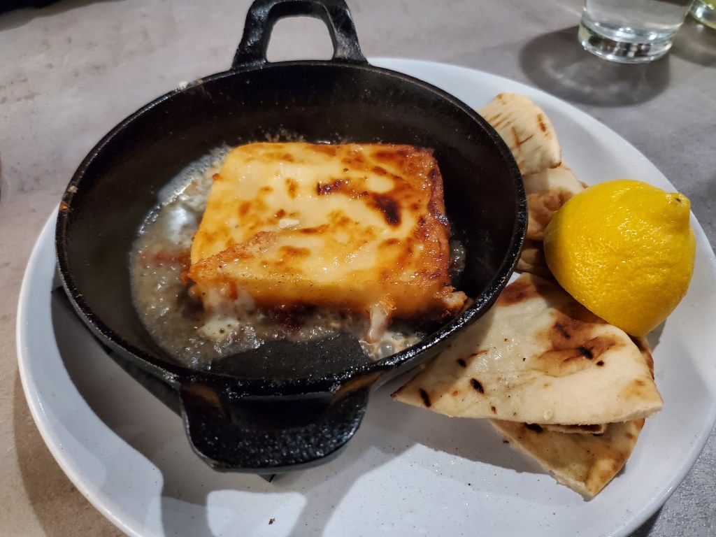 To get us started, my mother-in-law ordered Kasseri cheese flambé for the table. It was set ablaze tableside for the visual highlight of the evening.