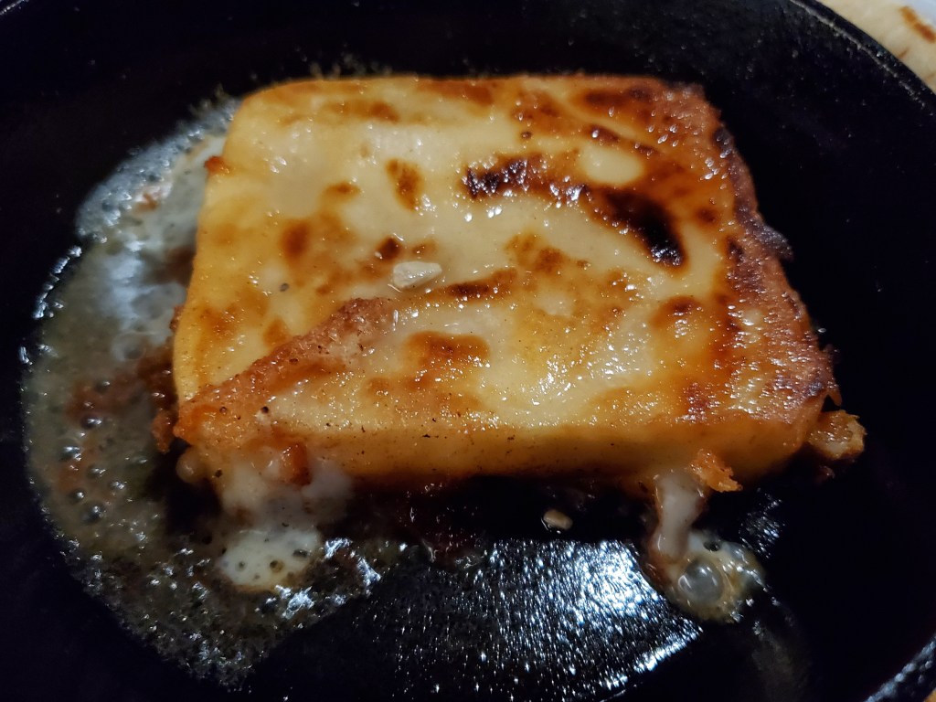 Kasseri cheese flambé