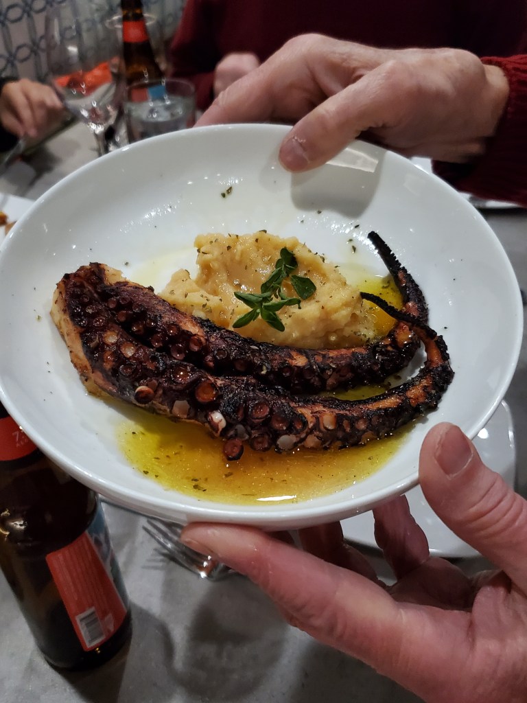 Other appetizers, all of which elicited positive commentary, included my father-in-law’s beet and goat cheese salad, octopus for one brother-in-law and mussels in white wine sauce for the other.
