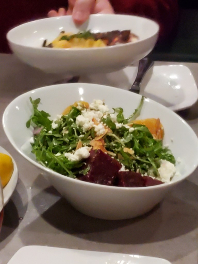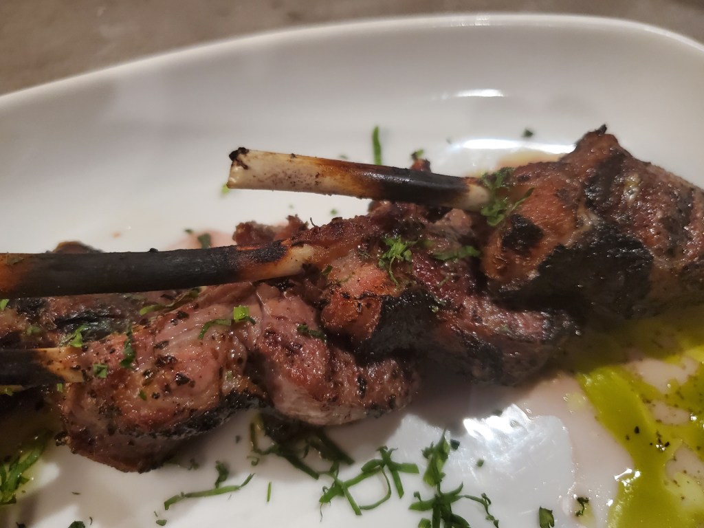 As usual, I had scoped out the menu in depth during the week and thought that I had settled on either one of the fish options or a seafood and pasta dish. But when the time came for me to order, for some reason, “lamb chops” came out of my mouth. I wasn’t sorry, as they were very flavorful, juicy and cooked to medium-rare, as requested.