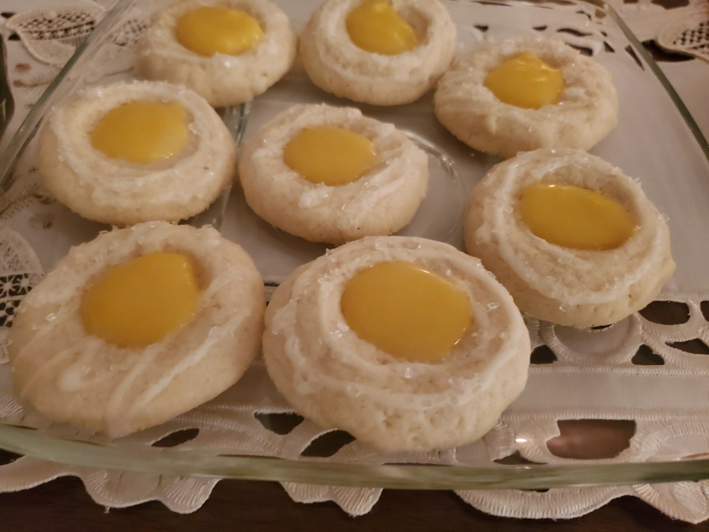 My wife stuffed these thumbprint cookies shortly before we ate them with lemon curd she made from scratch.