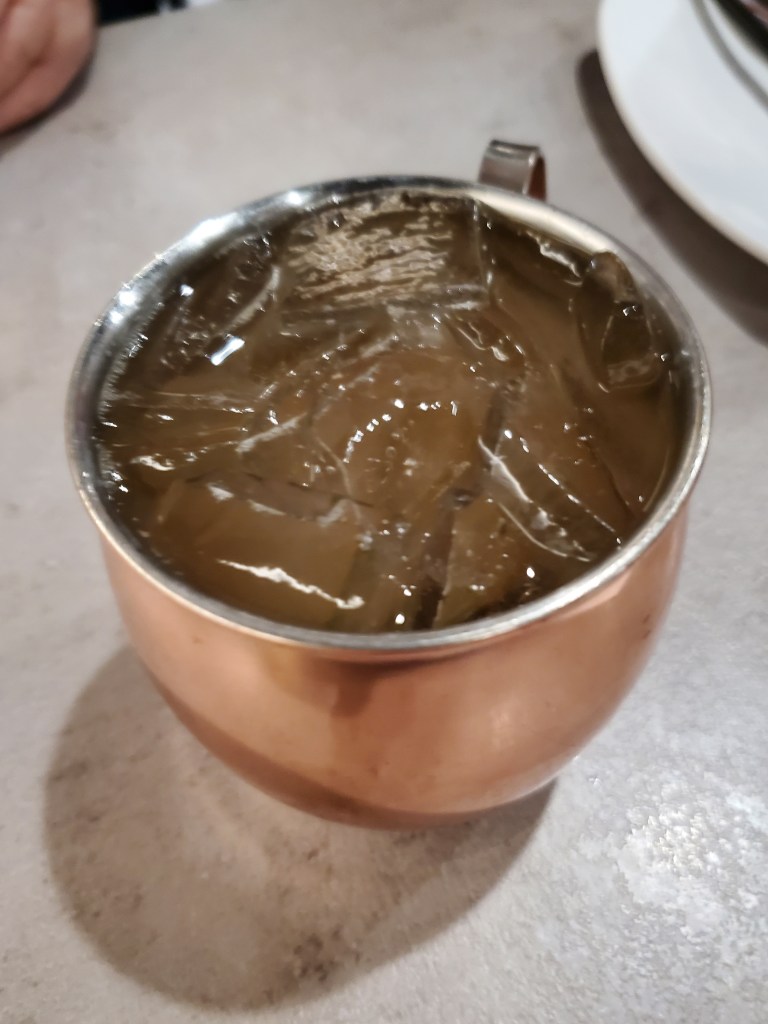 Given the occasion, some of our party ordered drinks; a Moscow Mule in the case of one of my brothers-in-law. The other informed us that based on information he picked up at a bar in Moscow, the drink is actually an American creation.