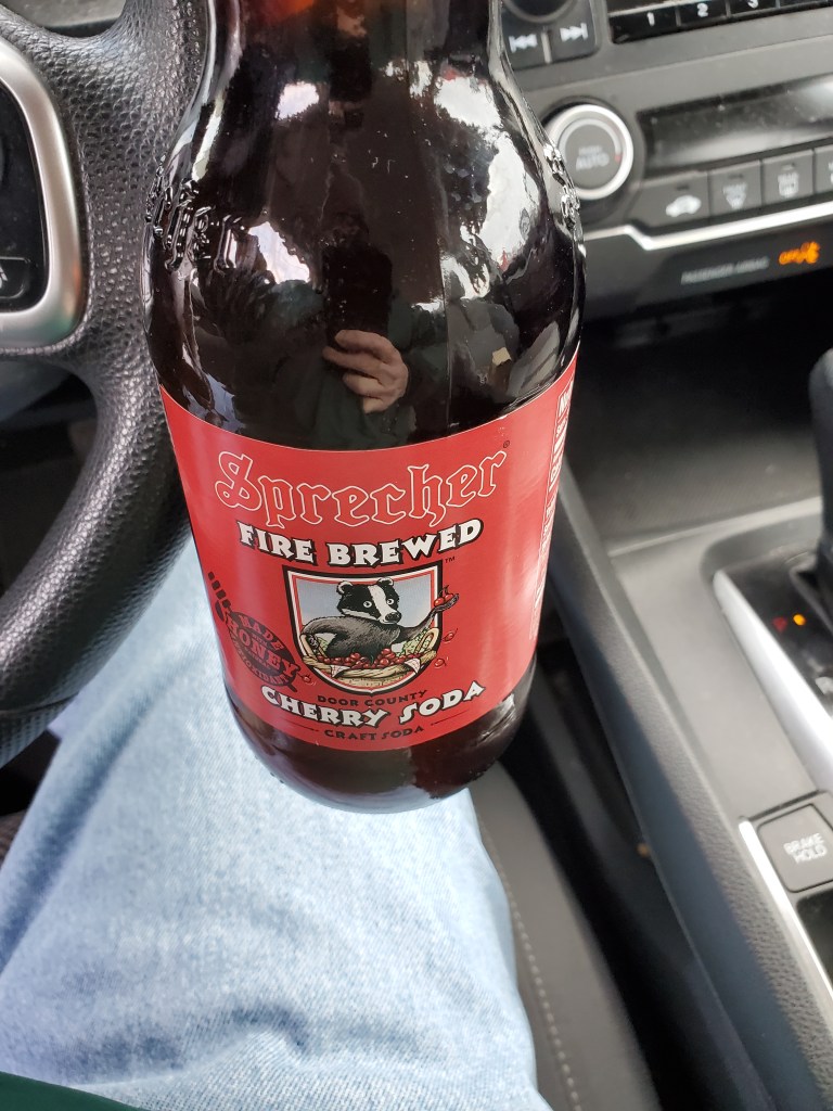 I ordered my quarter-pounder topped with Cooper Sharp cheese, fried onions, pickles and ketchup and ate it in my car. To wash it down, I had a Sprecher’s cherry soda from home. It went very well with the burger.