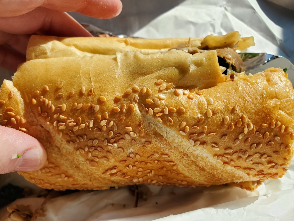 The sandwich shop is takeout only and doesn’t have much open space inside. While waiting for my order, I spotted a couple Aversa bread boxes on top of their well-stocked soda fridge. Aversa’s seeded rolls are very good and are also used at my local standby, Johnny Paisano’s.