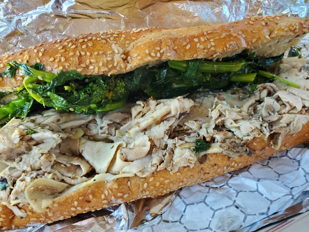 While they have a wide array of hoagies, I was focused only on their house-roasted pork on this day. A Cut Above’s version of the Roast Pork Italiano comes standard with aged sharp provolone cheese and roasted peppers, but they will substitute broccoli rabe for the peppers and I made that request.
