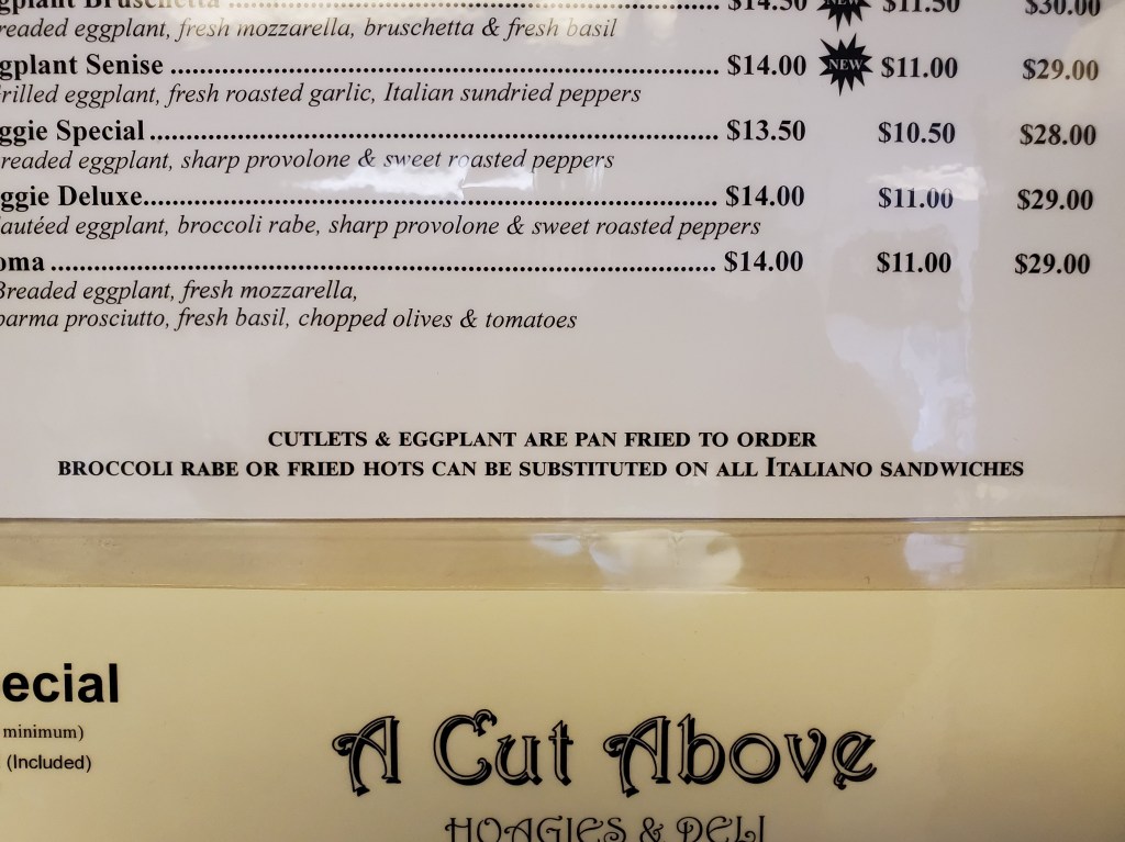 It’s only been a little over a month since I wrote about the magnificent Italian hoagie I had from A Cut Above Deli in the western Philly suburb of Newtown Square, PA. As part of that post, I mentioned a desire to return there soon to try one of their hot sandwiches. And in the weeks since then, I hatched a plan to survey the region’s Roast Pork Italiano sandwiches. Not surprisingly, A Cut Above was one of the first places to come to mind when mapping out that project.