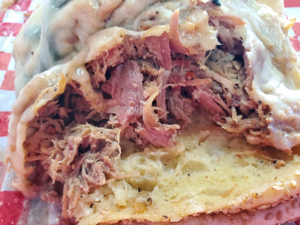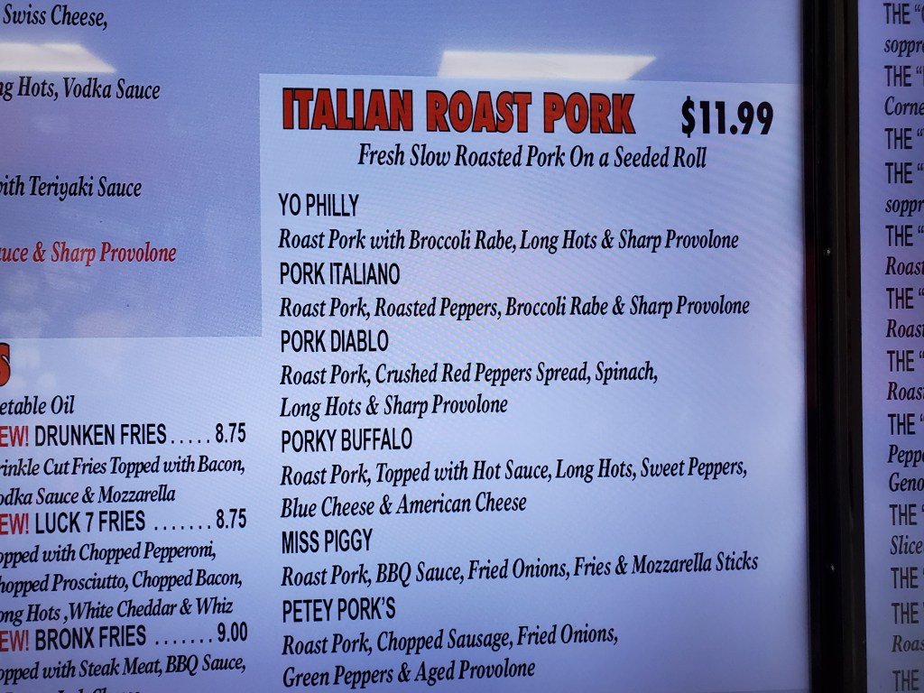 I am pretty sure I asked for sharp provolone, but what was on my sandwich tasted like the mild version. It’s possible there was a miscommunication with the young lady who took my order or it may just be a case of sharp provolone not packing the flavor wallop that comes with aged sharp provolone. The other roast pork sandwiches I’ve eaten recently featured aged – a.k.a. stinky – cheese.