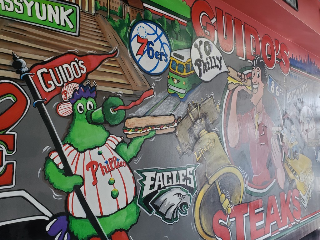 I again found Guido’s to be a pleasant place to eat a steak. I’m not talking about fine dining, but it isn’t a hole-in-the-wall and the staff keeps the dining room clean. They also have an eye-catching sports-themed wall next to the seating area.