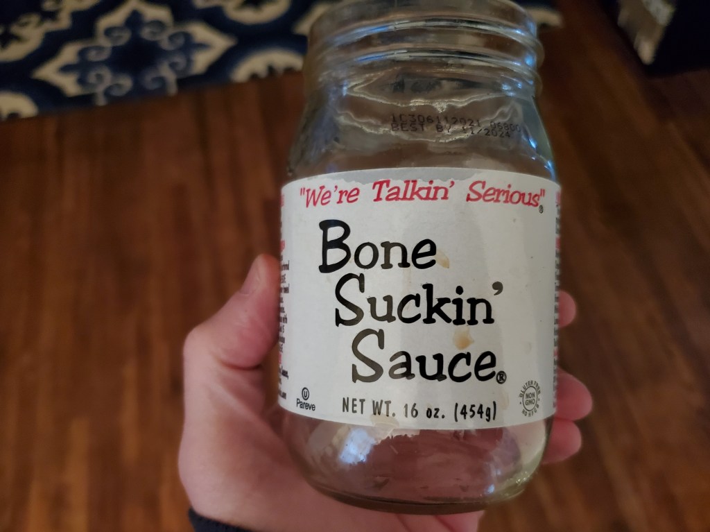 The meat was left un-sauced, but I had some Bone Suckin’ sauce – to which I added hot sauce – on the side for dipping.