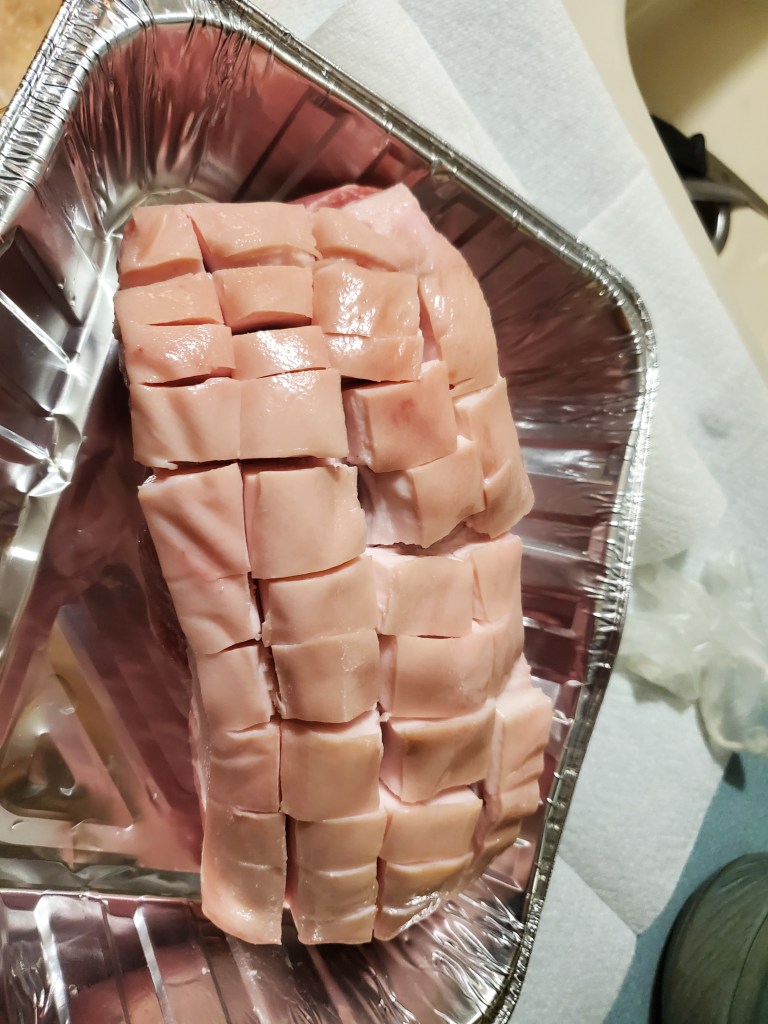 The next best option is a picnic shoulder roast, and I was able to find one that weighed just under five pounds with the bone still in. This would be only my second time working with this cut of meat, and the first took forever to finish. But that one was closer to nine pounds, so I figured I’d be okay.