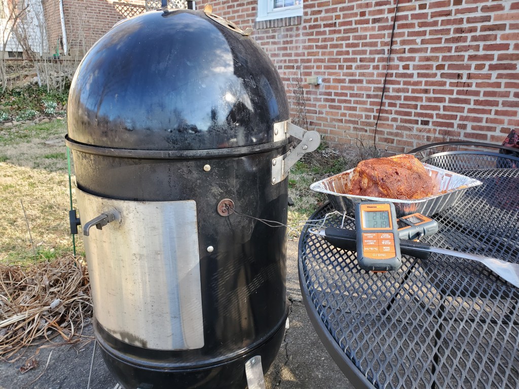 I don’t normally use my smoker before spring, but when I saw Sunday would be fairly warm, I had the sudden itch to barbecue. It had been at least a couple years since I last made pulled pork, and I decided to end that drought.