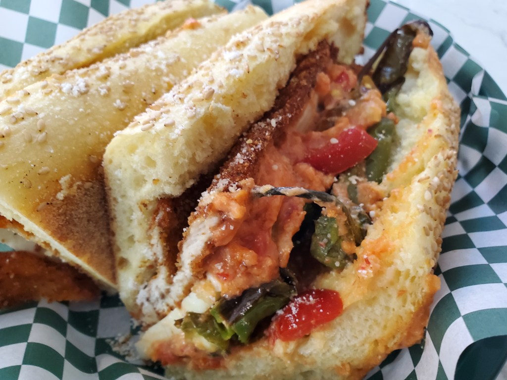I went with my usual cheesesteak with fried onions. It came on a seeded roll with Cooper Sharp cheese by default. My wife ventured off the printed menu and ordered the special sandwich of the day, “The Carbone,” which featured a spicy chicken cutlet with vodka sauce, cherry peppers, long hots and Mozzarella on the same seeded roll.