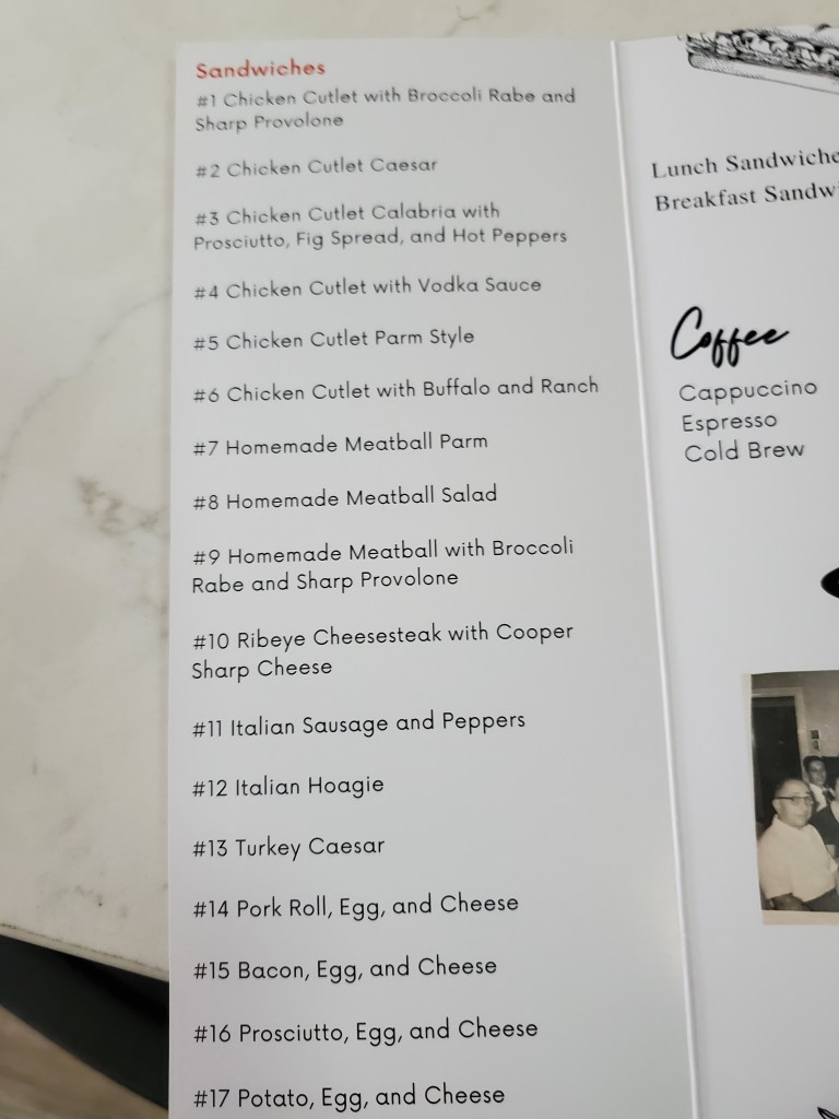 Loretta’s has the atmosphere of a coffee shop along with a nice array of sweets behind the ordering counter. But while there are plenty of cafes with pastries all over the area, not many of them offer South Philly-style Italian sandwiches on semolina rolls delivered daily from New York City.