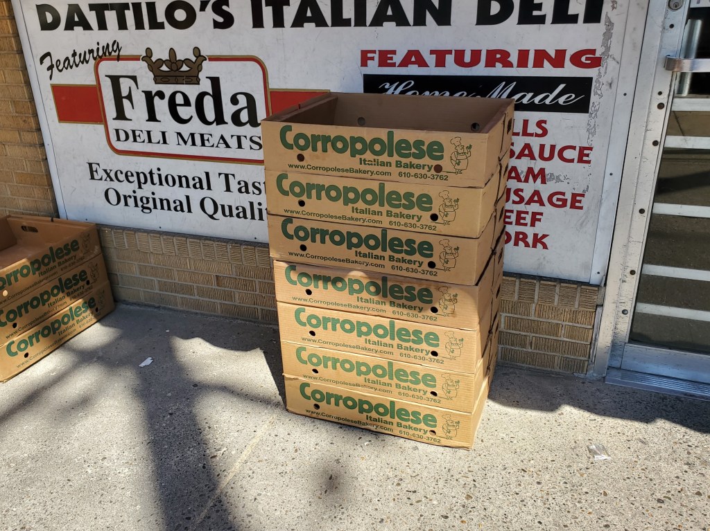 I was able to confirm via the bread boxes on the sidewalk in front of Datillo’s that they still get their rolls from Corropolese Italian Bakery. They are a popular supplier with Philadelphia area sandwich shops, but their rolls tend to be a bit softer and less crusty than I prefer.