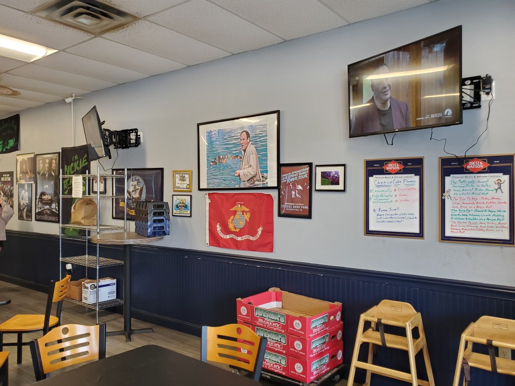 The interior is fairly standard for a Philly-region sandwich shop, with sports and mafia film references on the walls, an ordering counter up front and a few tables in addition to a counter and stools by the window for those eating there, as I did.