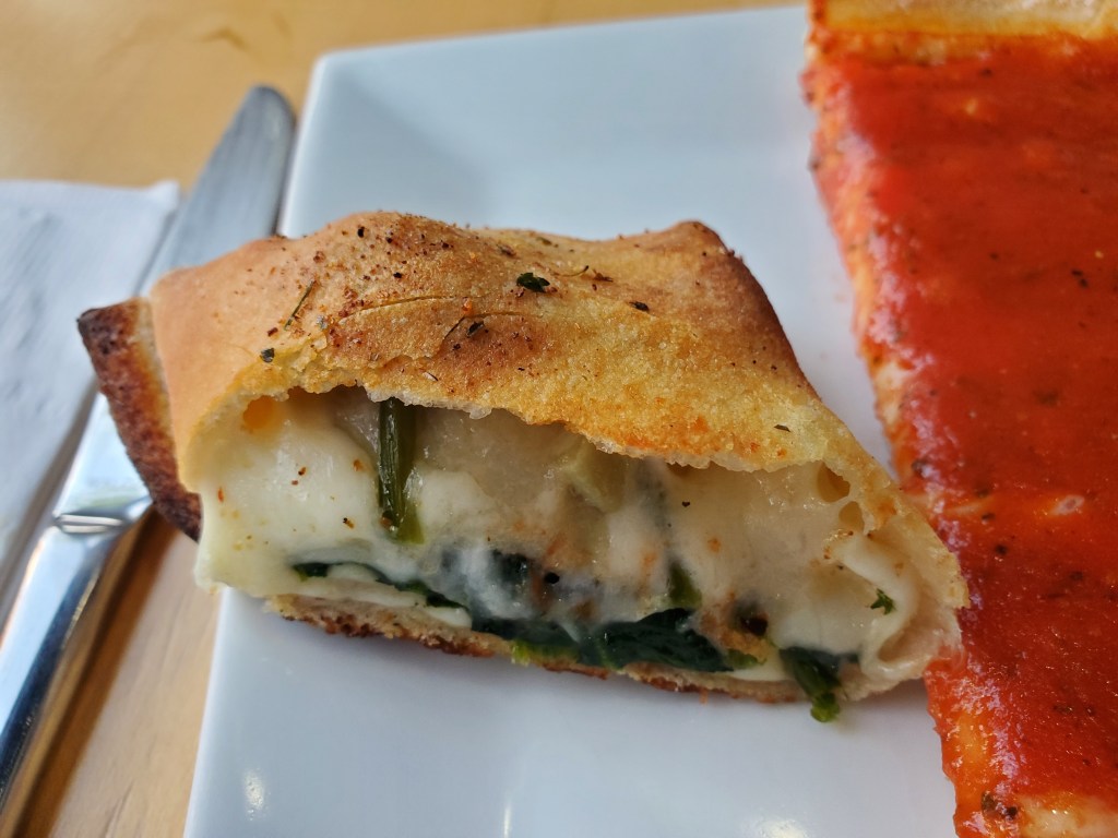 Santucci’s great pizza wasn’t the only highlight of our meal. The spinach stromboli, which included Provolone cheese, was also excellent, with a crispy crust and a flavor that reminded me of a white-spinach pie. I ate my piece without the addition of sauce. It would have been a very satisfying meal on its own had I not been so focused on getting my pizza fix.
