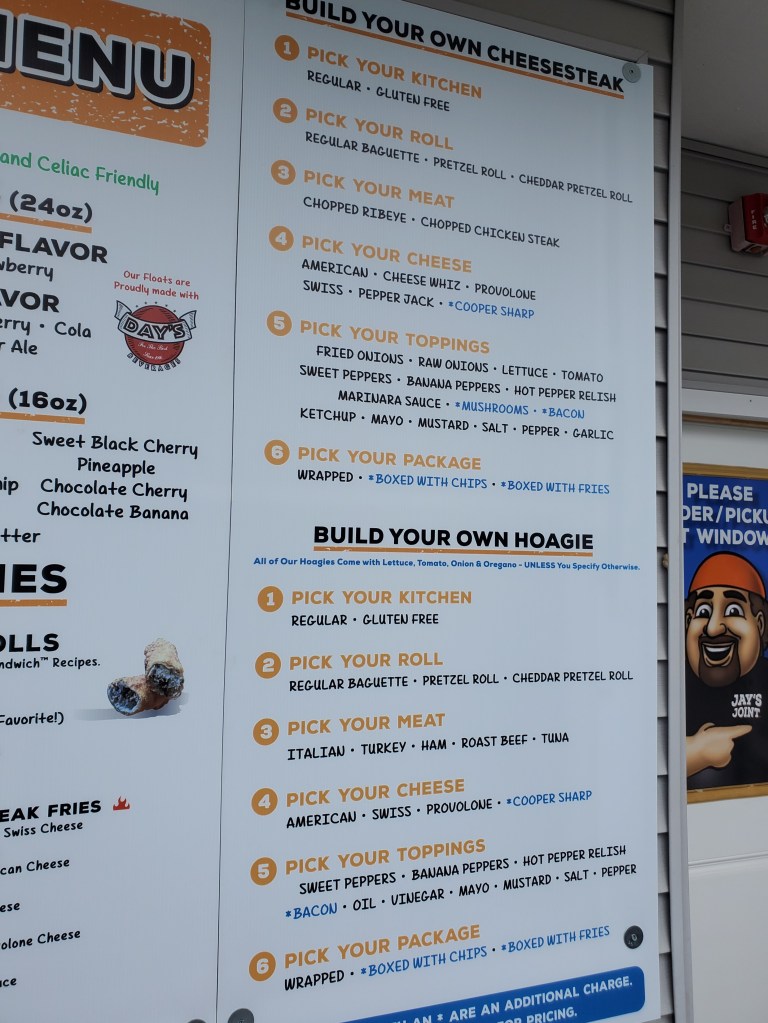 Jay’s menu features a fairly large array of specialty steaks and hoagies, as well as design-your-own options. All of their sandwiches are either pretzel roll-optional or come on one by default. Although the photos I’ve seen of their regular rolls looked good, I was there to try a cheesesteak on a pretzel roll.
