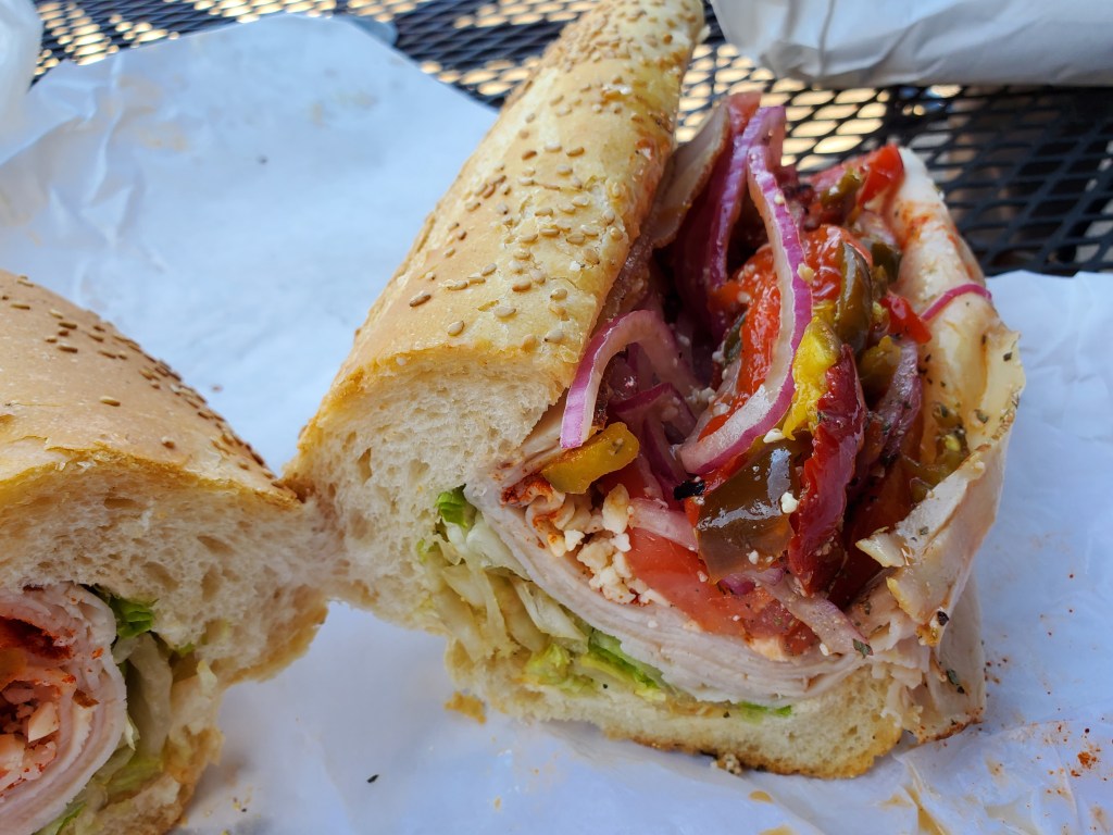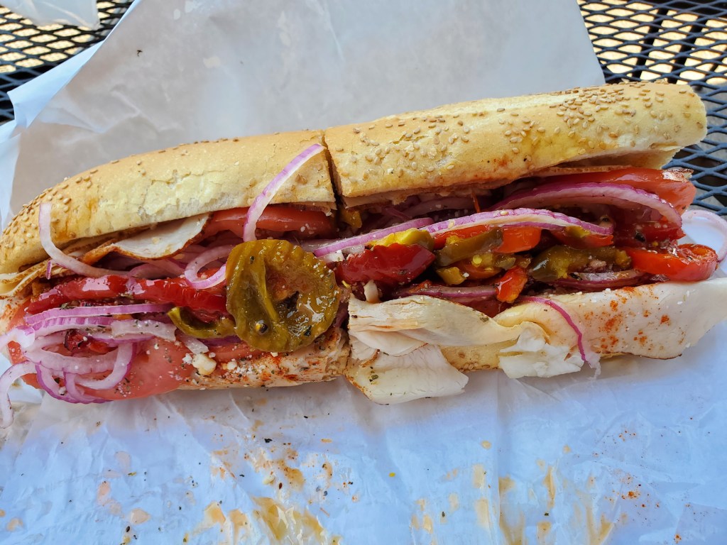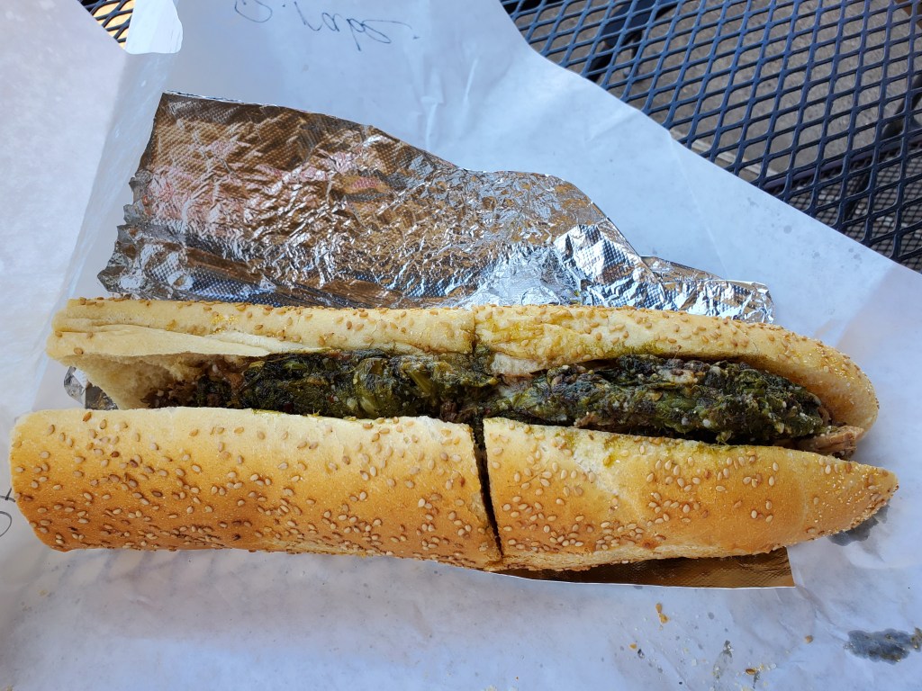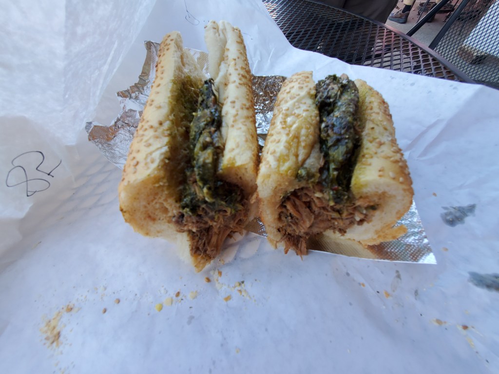 As usual, I ordered one with Cooper Sharp cheese and fried onions, which Abdel and I would split. These are very hefty steaks and I didn’t have a big appetite after eating a cheesesteak stromboli the previous day. My mother-in-law also ordered a steak with Cooper Sharp, but asked for mushrooms rather than onions, while my wife went with a Da Diavlo turkey hoagie and my father-in-law had a roast porcetta sandwich with aged sharp Provolone and broccoli rabe.