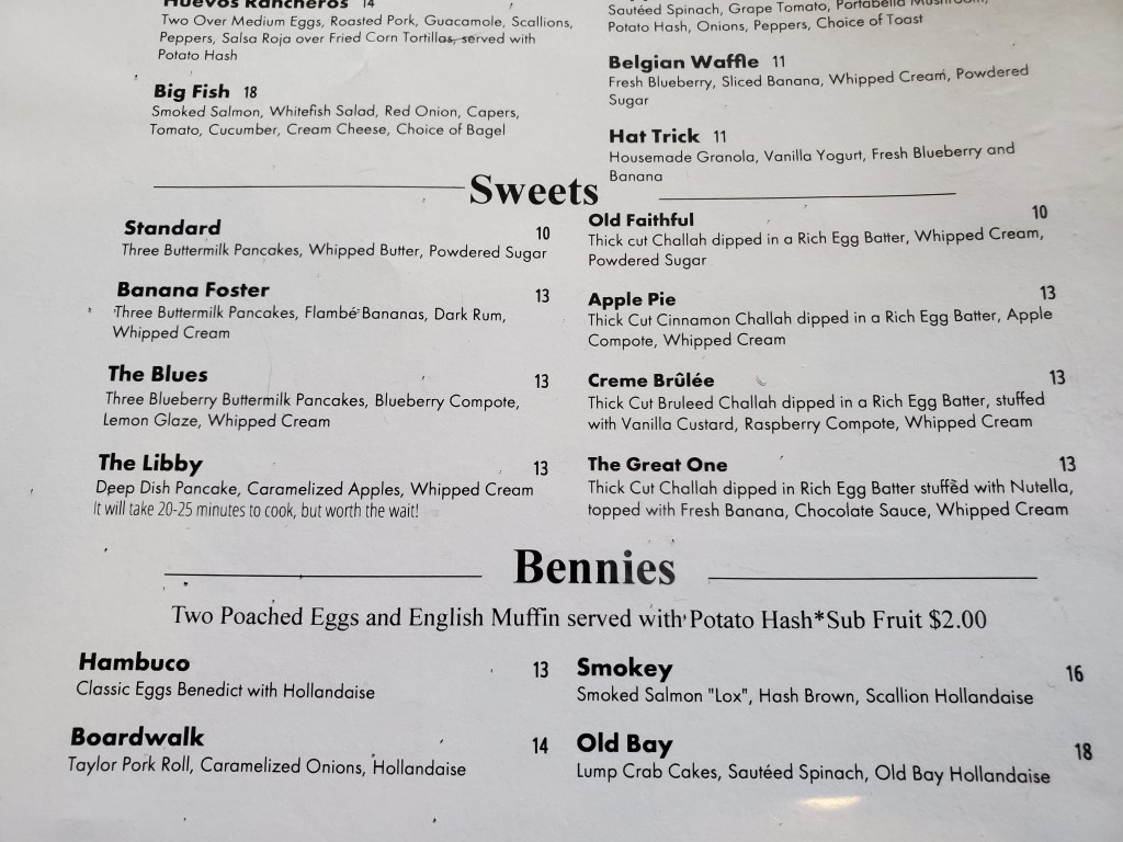 In the order they appear in the above photos, the dishes that tempted me were Shrimp and Grits, the Down South, Breakfast Tacos, the Big Fish, 6 Hour Hash, and all of the sweet items, including the Baked Blueberry French Toast that was among the week’s specials.