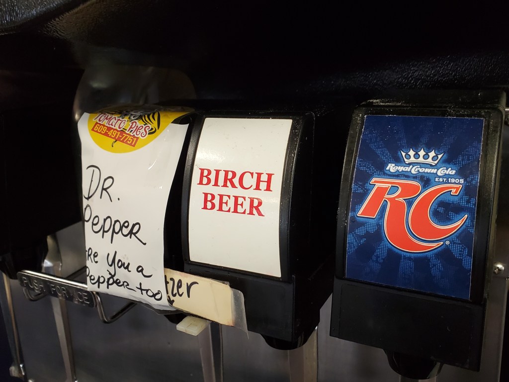 While waiting for our food, I checked out the pizzas that were on display for sale by the slice and helped myself to birch beer from Lillo’s invitingly unorthodox soda fountain. When is the last time you saw RC on one of those instead of Coke or Pepsi?