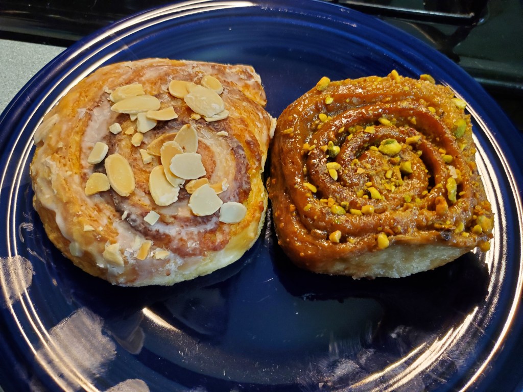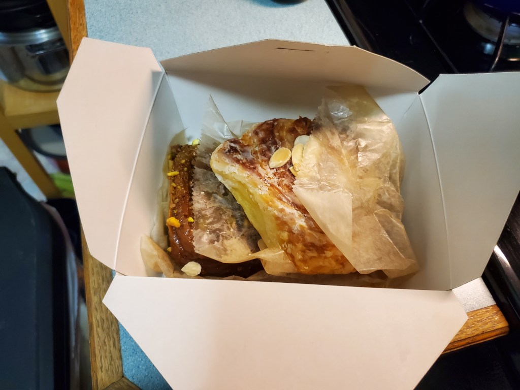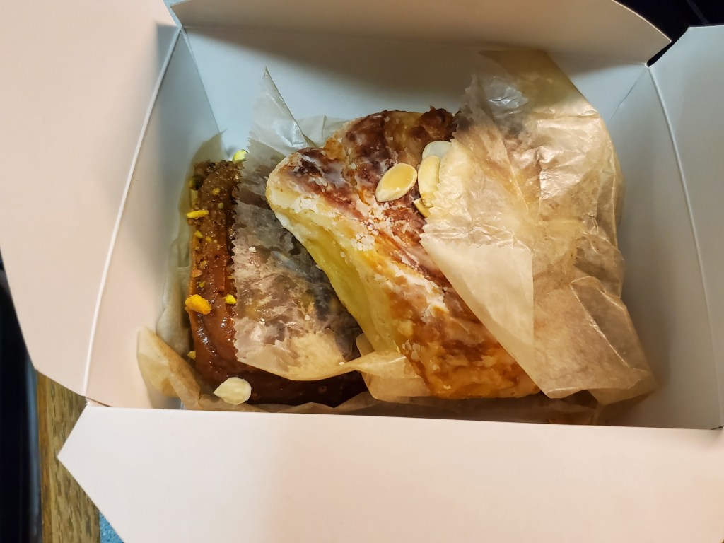 But I didn’t have to wait that long to satisfy my sudden craving for baked goods. When my wife arrived home early Wednesday evening – and before I could get the question out of my mouth – she presented me with a pair of pastries from K’Far Cafe, a renowned Center City bakery and coffee shop, as an early birthday present.