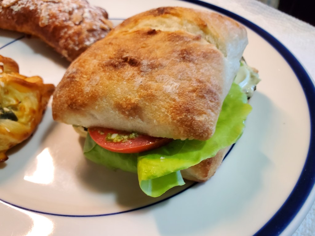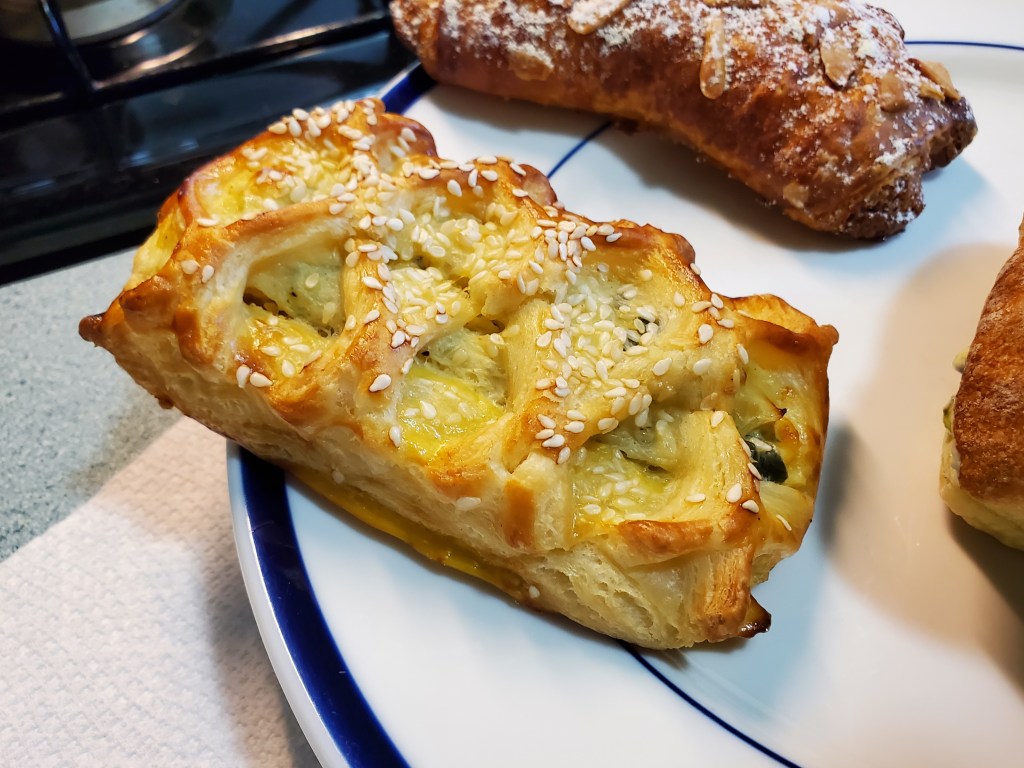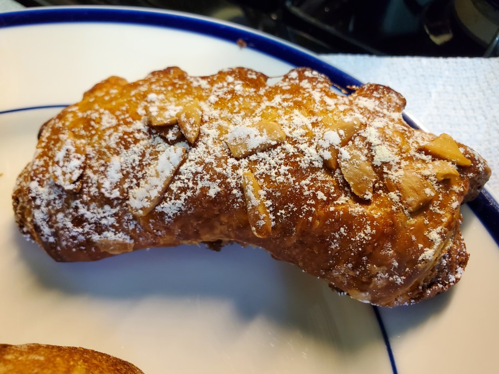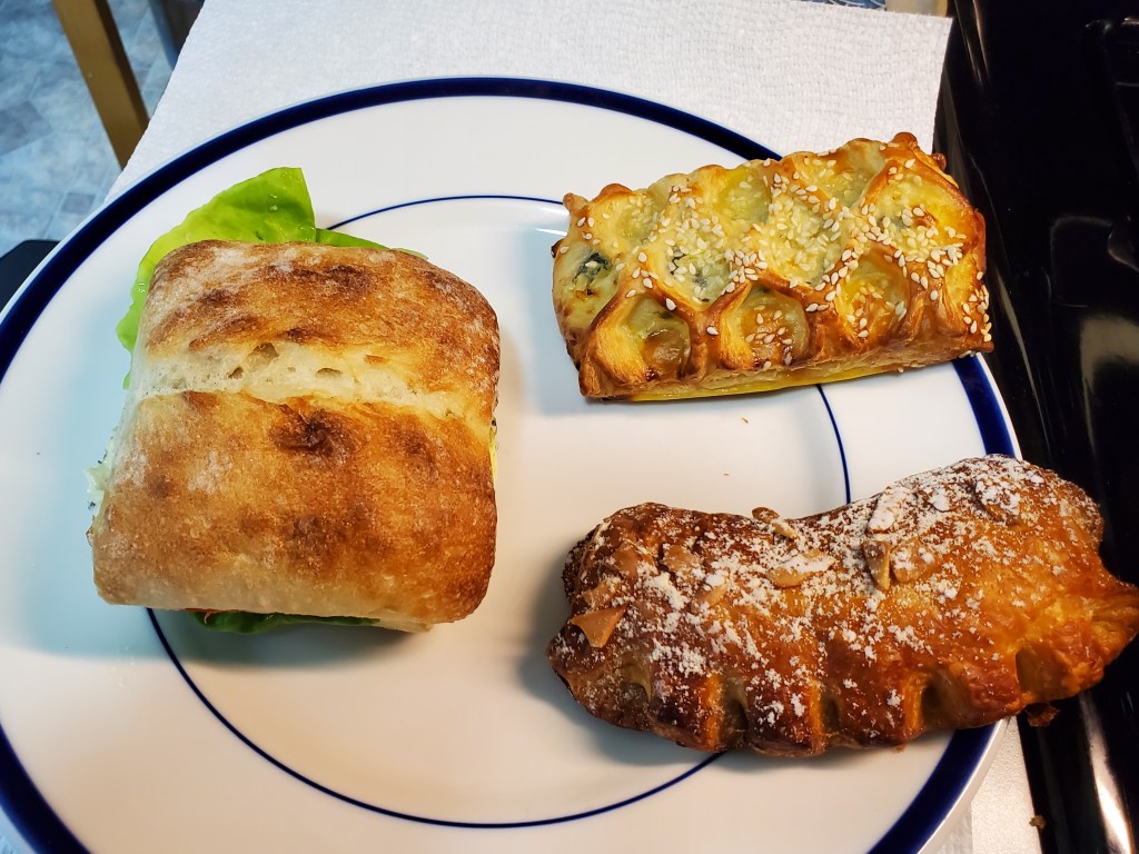 That’s my way of saying I don’t have a significant meal to report on today. Rather I took a respite by eating what passes as “light” food by my standards. I already had planned on asking my wife to accompany me to a relatively nearby bakery that was recently recommended by a friend. They have a few savory items in addition to an extensive array of sweets, so I figured we’d stop by and take out a few things to sample for lunch and dessert Thursday.