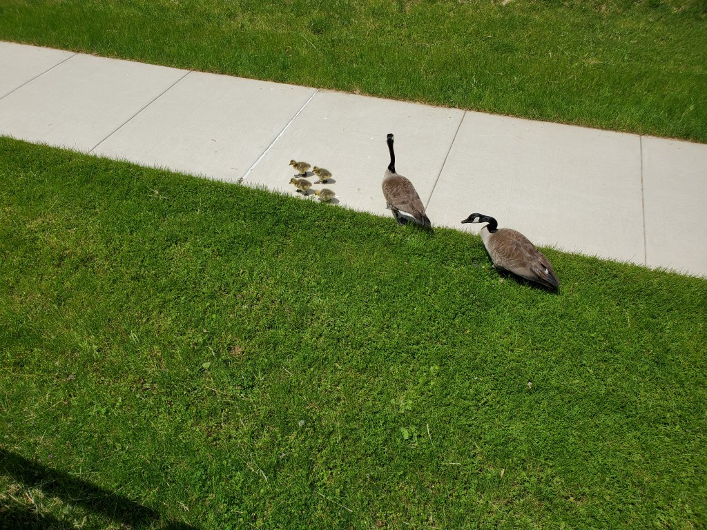A few weeks ago I posted on a family of geese that is living by a pond that sits next to a train station near me. The rate at which the young geese are growing is amazing. It’s almost difficult to tell which ones they are and which are the parents at this point.