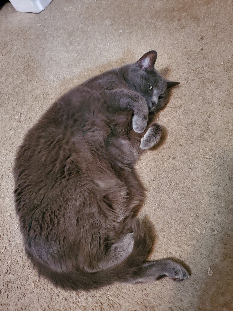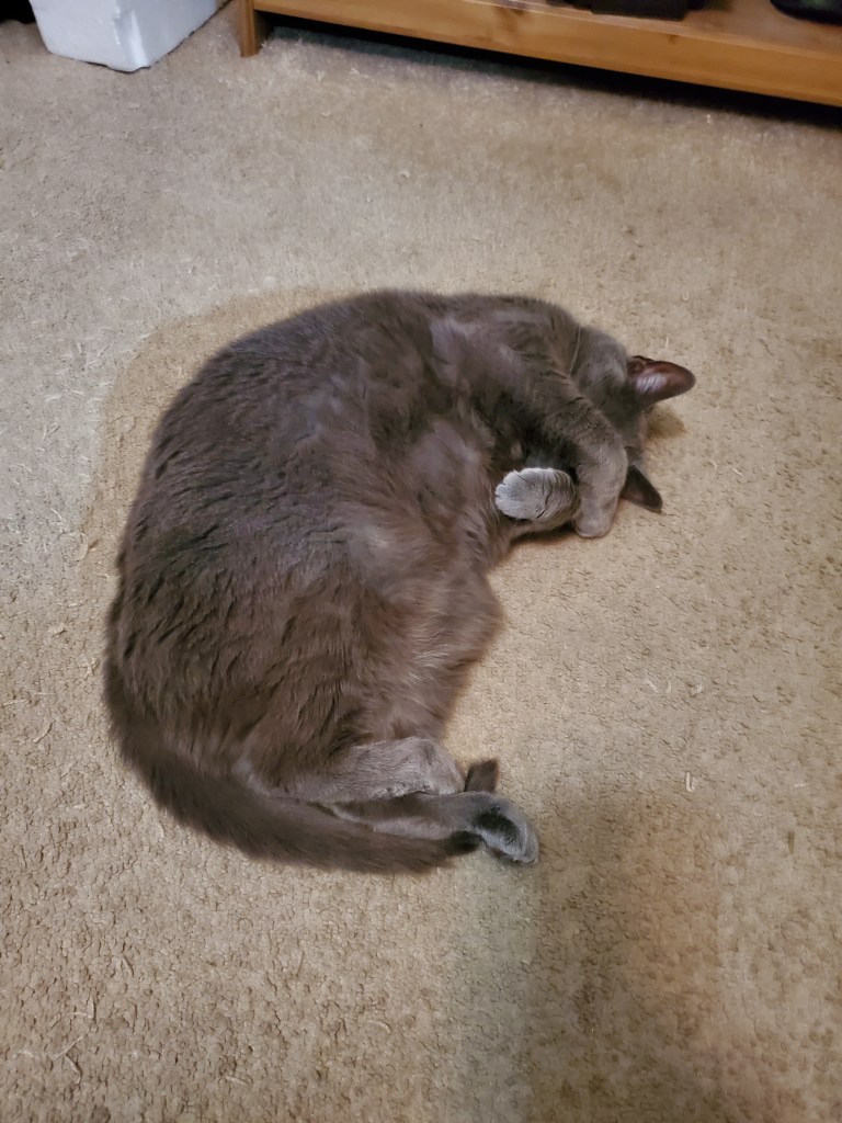 And if you really want to die from an overdose of cuteness, here are a pair of photos from earlier this week of our cat, Madge, in a couple of her favorite poses.