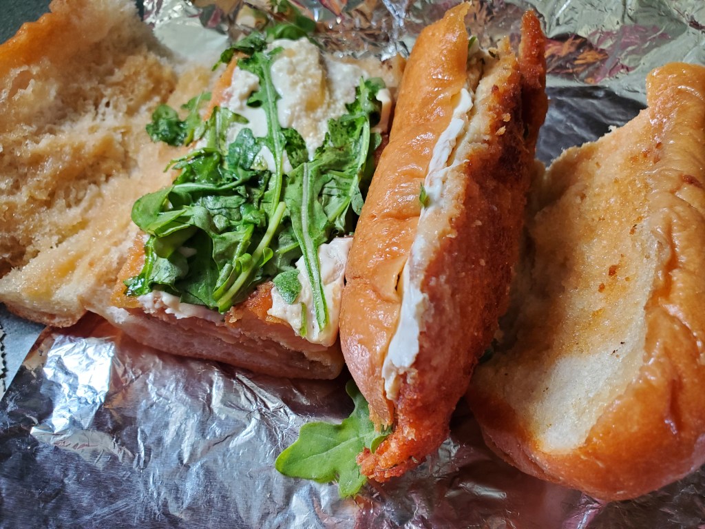 Unfortunately, it was wrapped long enough before I arrived back home to not be at its best from a photogenic standpoint. Nonetheless, my wife enjoyed the sandwich very much and singled out the hot honey for elevating it.