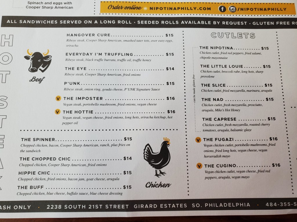 And on the strength of that wonderful pile of ribeye, Nipotina will get consideration when I revise my list of the Philly region’s best cheesesteaks later this year.