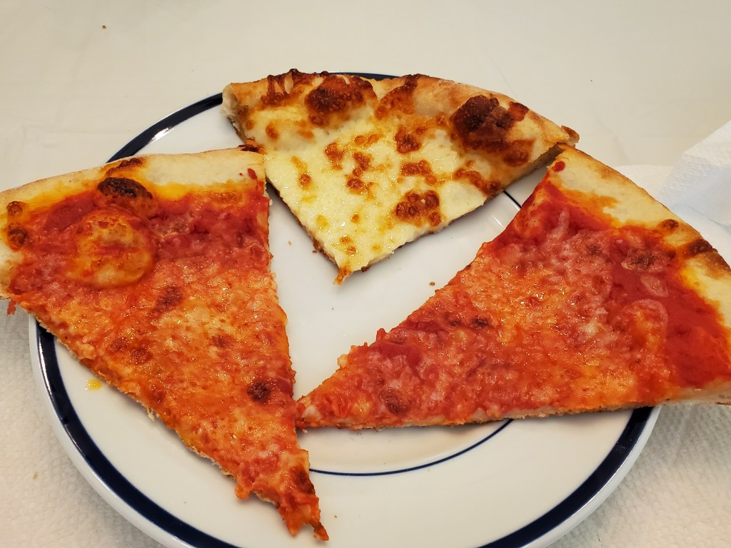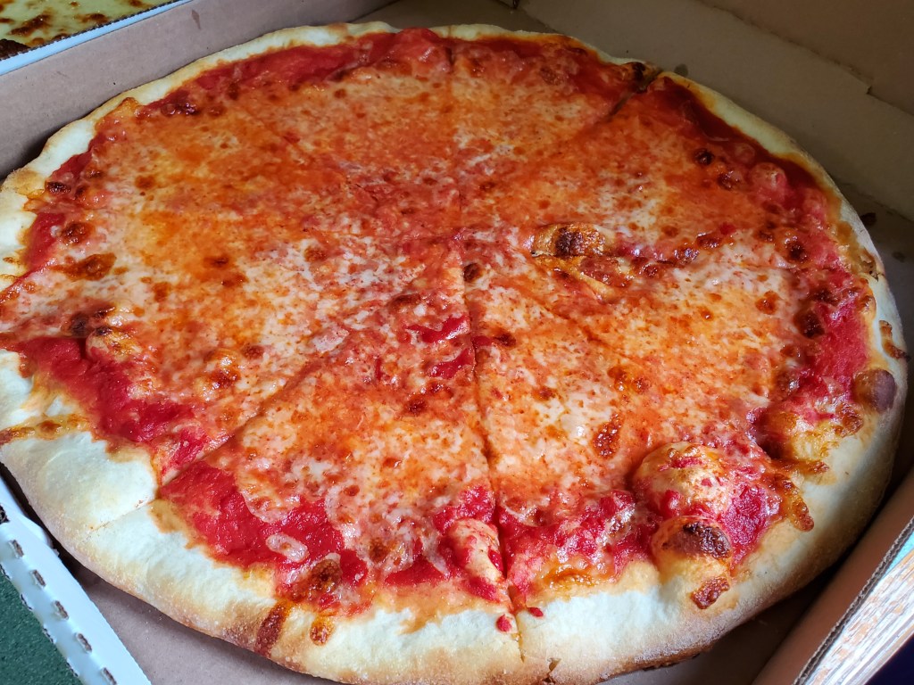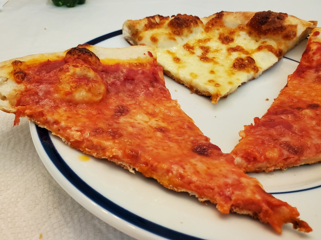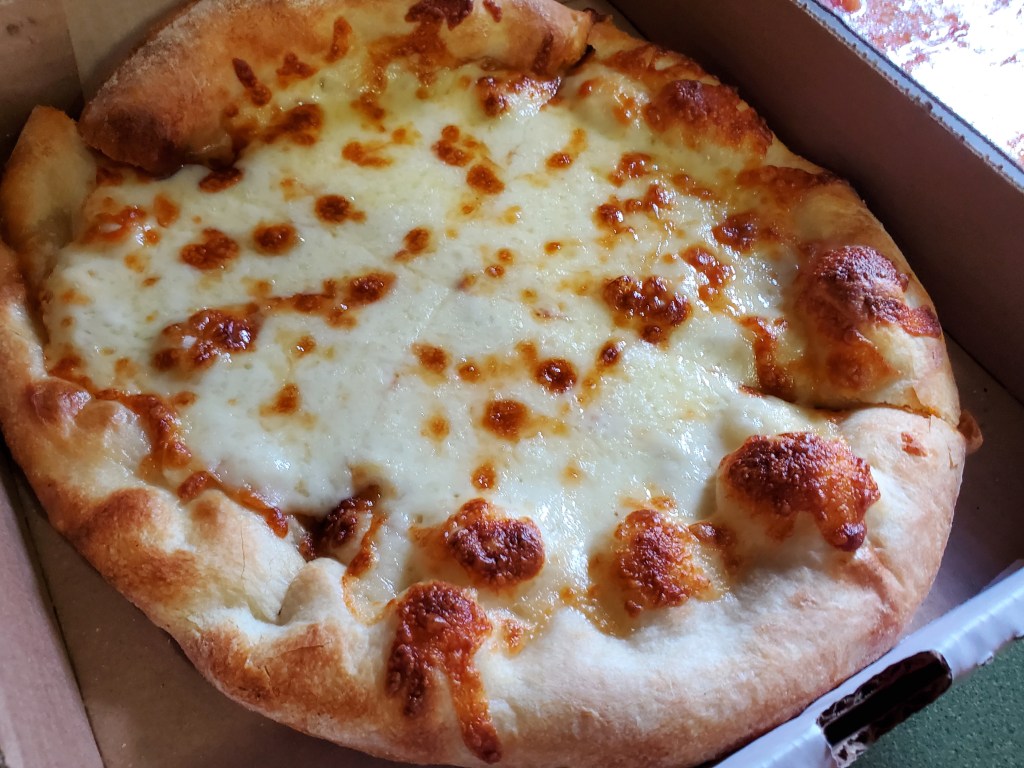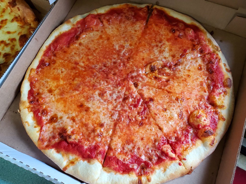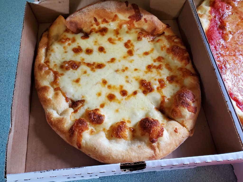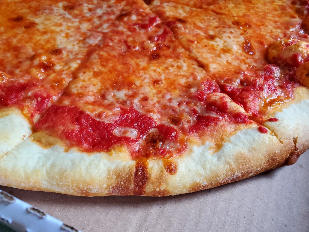 There were no surprises when I got around to trying the cheese pizza. The crust wasn’t well-done, but it had a bit of darkness in a few spots and was strong enough to hold the cheese and sauce without wilting when I picked up a slice.
