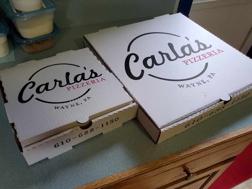 The pizza smelled fantastic in my car during the ride home from Wayne, which took even longer than the normal half-hour due to traffic delays. Although the desire to open one of the pizza boxes and grab a slice while sitting in a bumper-to-bumper jam on I-476 was strong, I didn’t have any plates or napkins handy and decided to play it safe.