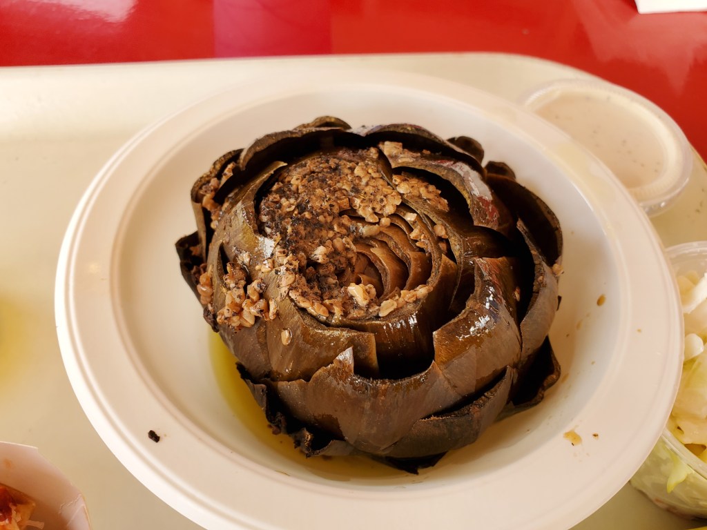 I zoomed in on the OMG Hot Lobster Roll on the upper right side of the menu. My wife was excited by the presence of whole fresh artichokes.