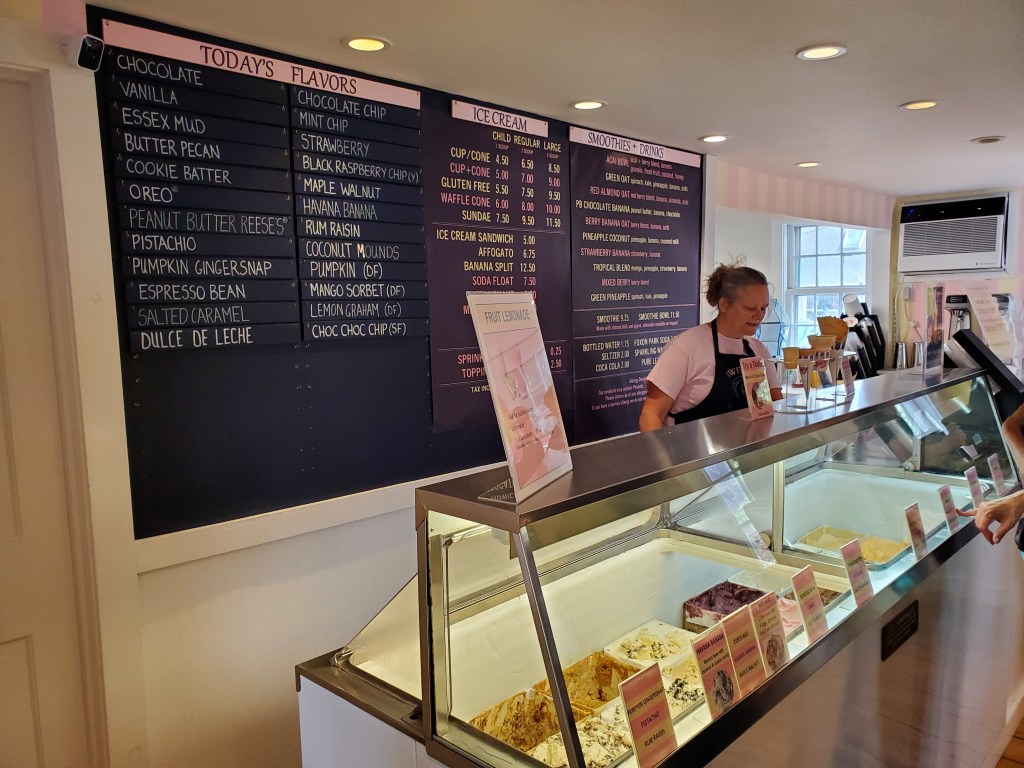 In our many visits to Connecticut over the years, we had never left the state without at least one ice cream stop. But it was getting late in the trip and we hadn’t had any yet. I knew there was a parlor somewhere in the heart of downtown Essex and we managed to find it without much difficulty. It may be the same shop we visited during our only previous stop in the town years ago.