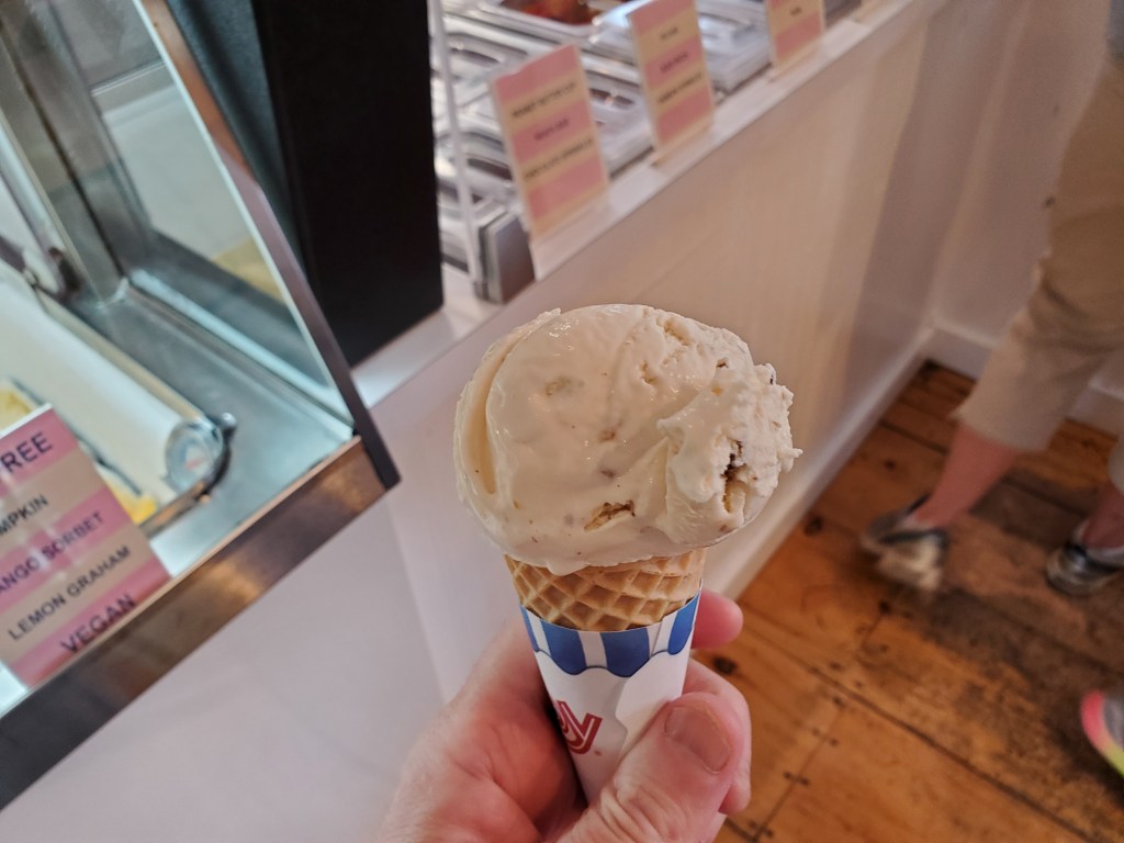 Sweet P’s flavor list included my New England favorite – Maple Walnut. I went for a scoop of that while my wife opted for Pumpkin Gingersnap. We were both happy with our selections, although the scoops were on the small side.