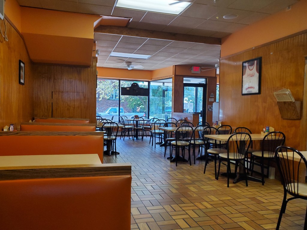 We wanted to sit outside, but a relentless bee took a shine to my soda, forcing us to move to Abbott’s indoor seating area.