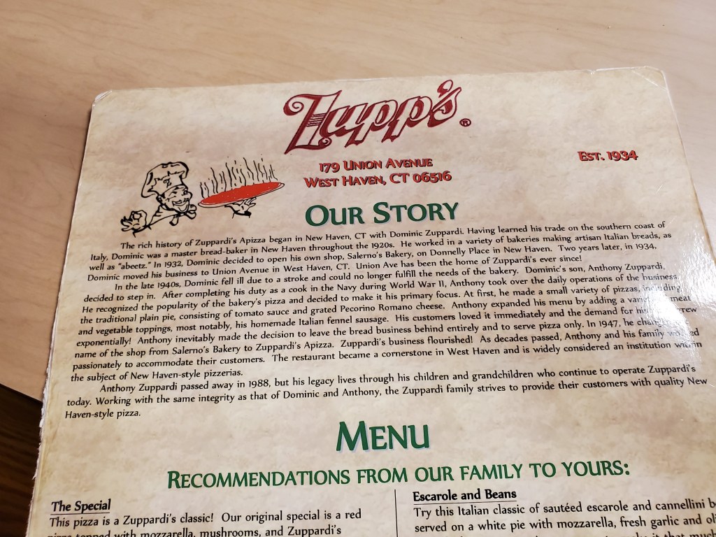 There must have been something magical going on around that region in 1934. Just as was the case with Modern Apizza, Zuppardi’s also opened that year.