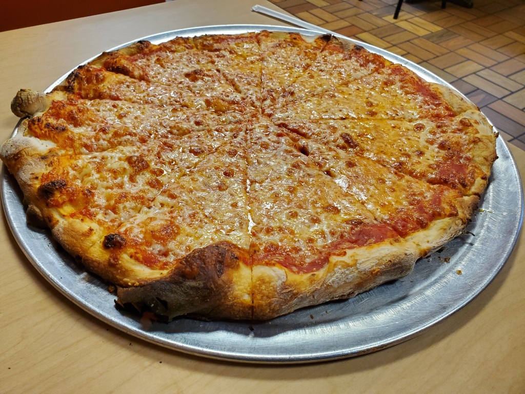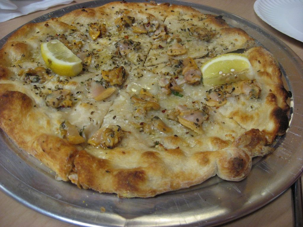 When I put out a list of the foods that belong in my roadfood pantheon a while back, the white clam pizza I had during that previous visit to Zuppardi’s was on it. We didn’t have enough of an appetite left on this occasion to order two pies and decided to get a plain one, but here is a shot of that earlier white clam pie.
