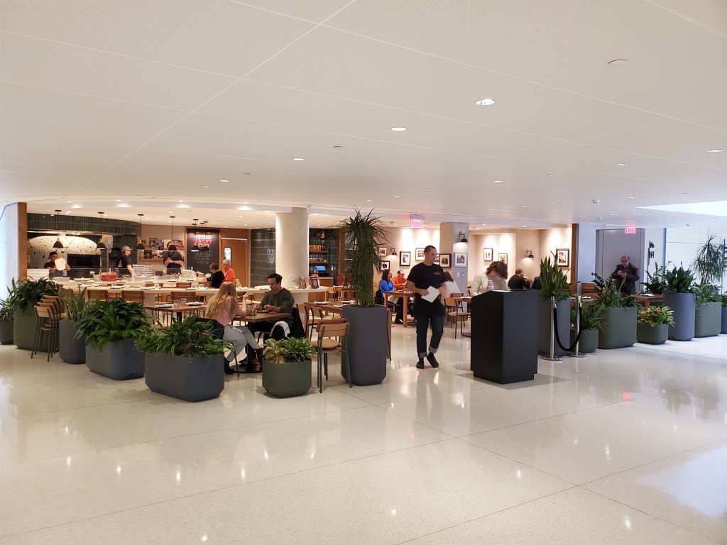 The restaurant is situated in the Comcast Technology Center, which is in Center City and is Philadelphia’s tallest building. With an assist from one of the lobby guards, I was able to find the restaurant in the building’s lower level. It has an open and extremely casual set-up – kind of like something you’d expect to see at an airport.