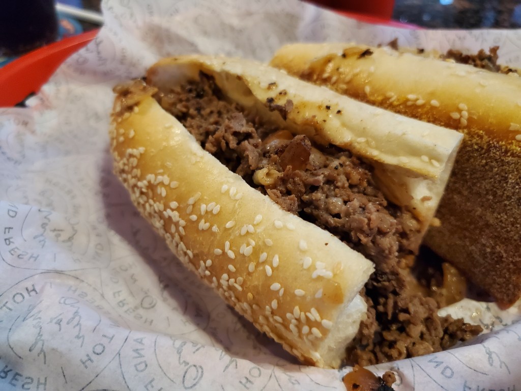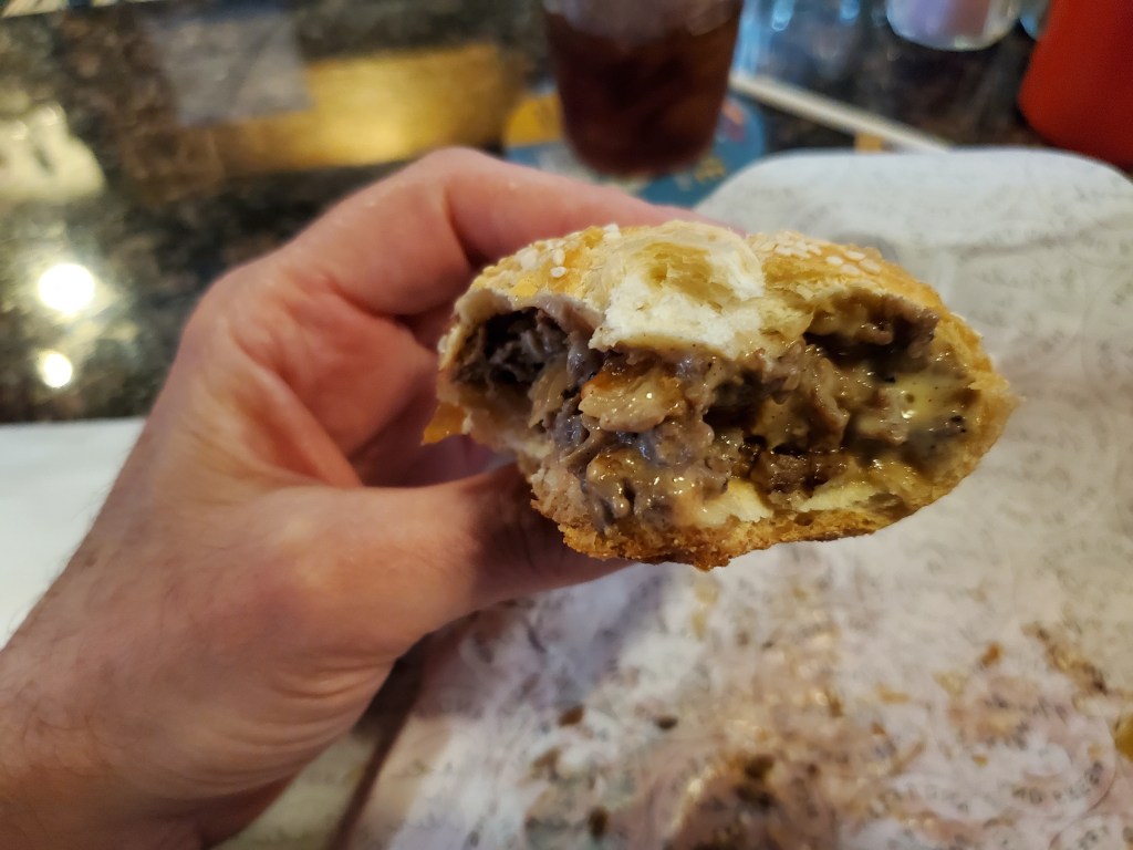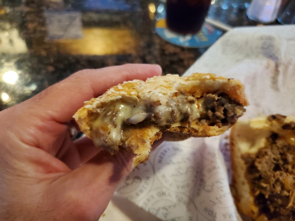 The first thing that jumped out at me was that there didn’t appear to be much cheese on it. Yet as I worked my way through the sandwich I discovered there were spots, especially closer to the two ends, where there was quite a lot of Cooper Sharp. It wasn’t blended in with the beef or distributed as well as it could have been. On top of that, the roll was softer than I prefer, although it was fresh and the crust had a bit of a chew to it.