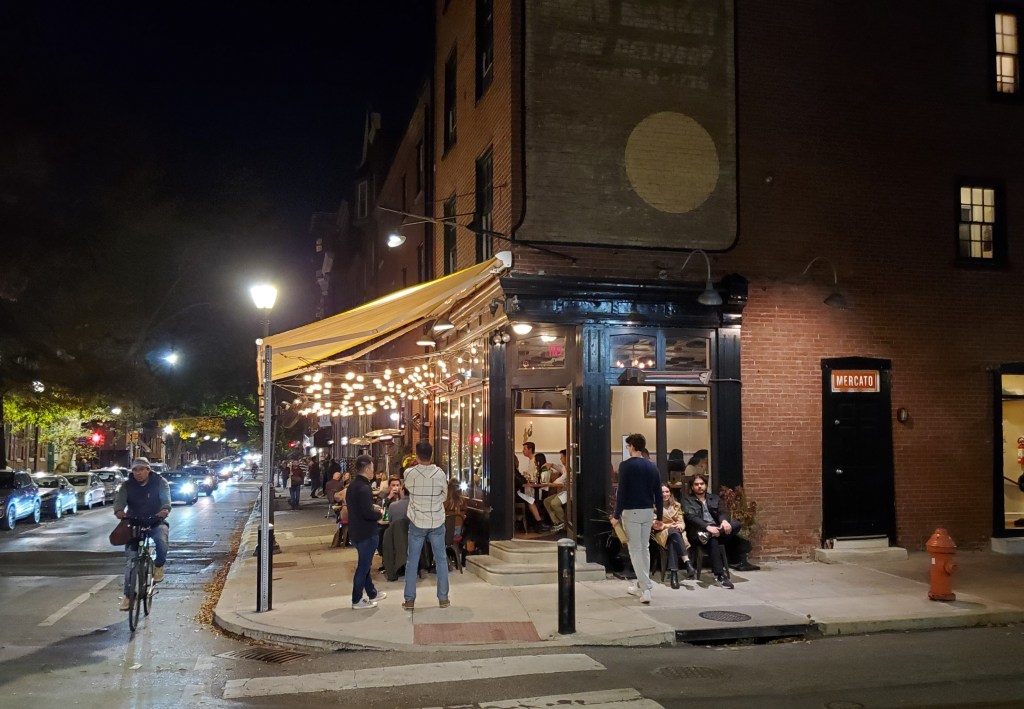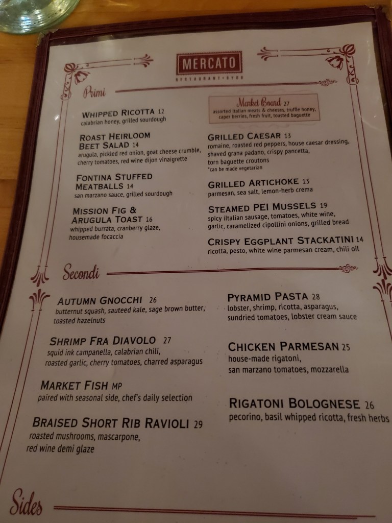 My mother took me to that first concert – an all-Beethoven program. She also accompanied me to see Muti’s grand return Friday evening. We wanted to have dinner beforehand at a restaurant near the concert hall in Center City and settled on Mercato, a fairly long-standing Italian BYOB. I ate there once years ago with my wife, but that was during a local Restaurant Week promotion and the place was packed to the gills. We had the full menu to choose from on this occasion and there was a little more room to breathe.