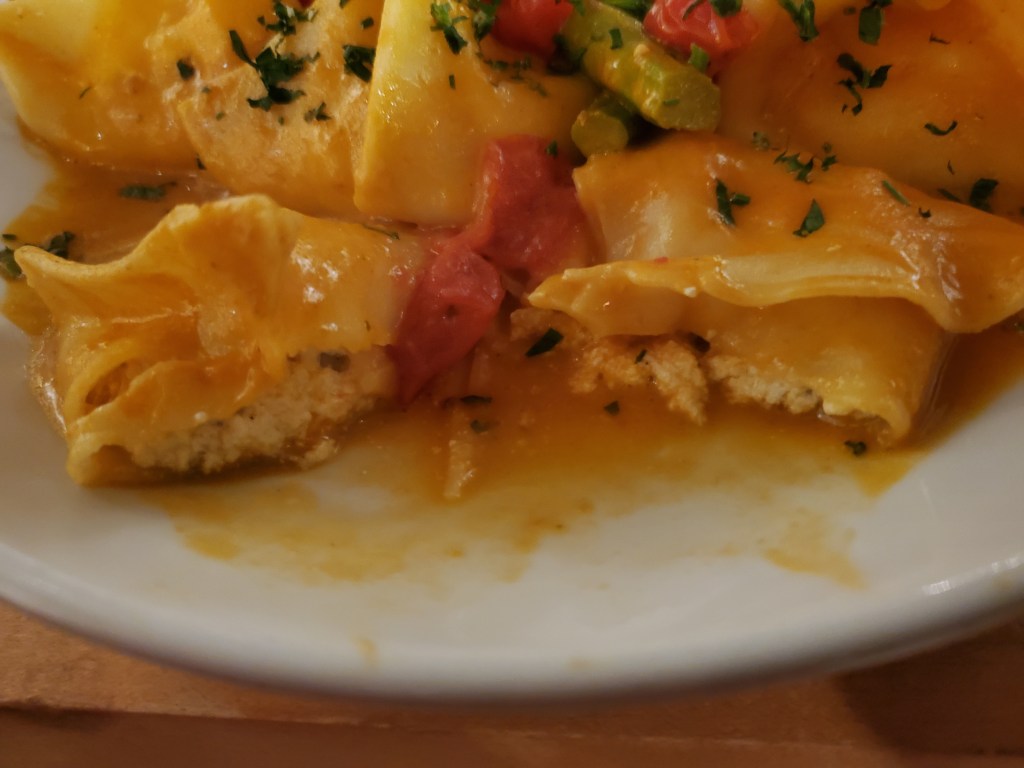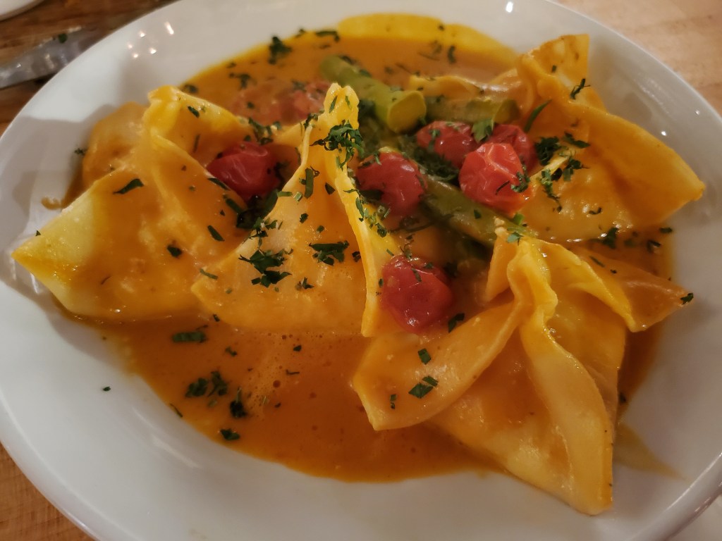The filling for mine was also extremely good. Too often with seafood filled pasta, there is merely an essence of lobster – or whatever they are using – with the cheese. In this case, I both tasted the lobster and shrimp and felt them from a textural standpoint.