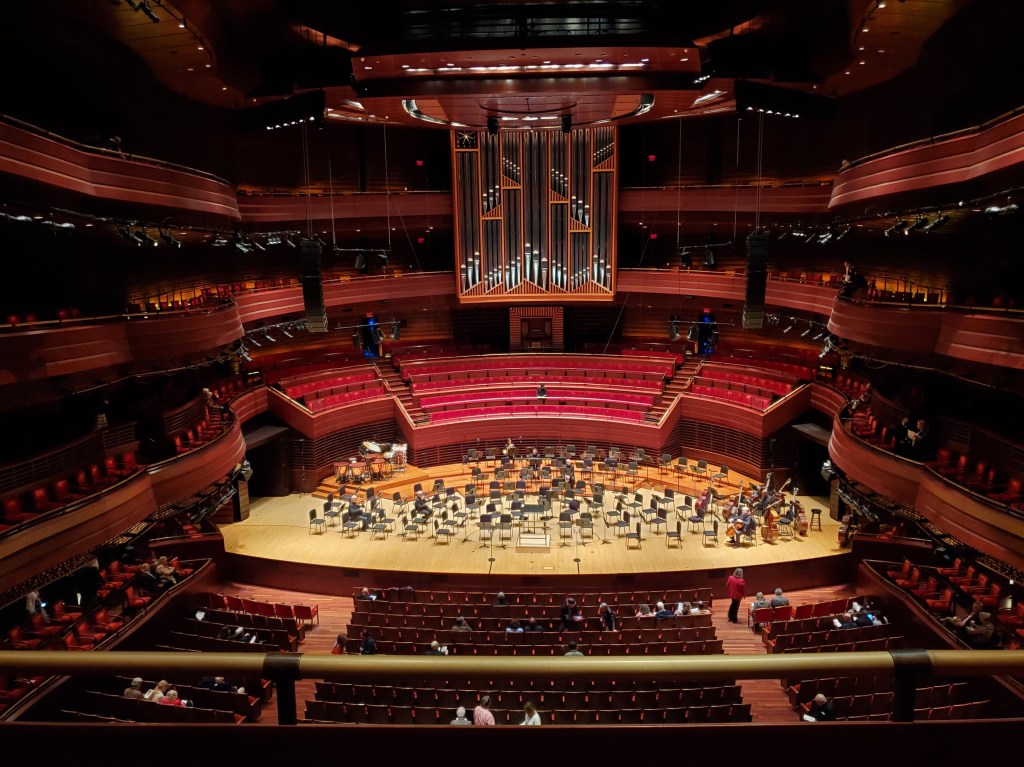 The pyramid pasta lived up to and may have even exceeded my longstanding and high expectations. But all of that bread and pasta left us too full to consider dessert. So we paid up and walked a couple blocks west on Spruce Street to the Kimmel Center, home of the Philadelphia Orchestra.